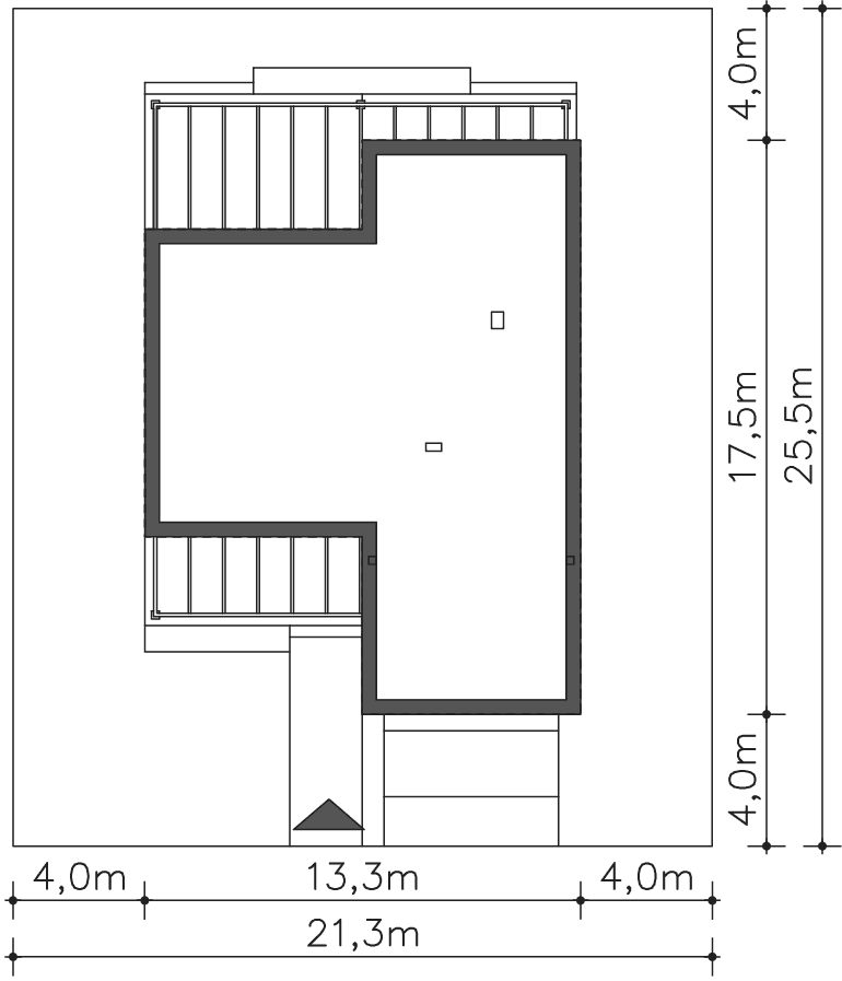 Grafika przedstawia minimalne wymiary działki. Aby sprawdzić, czy dom może być realizowany na konkretnej działce należy uzyskać Wypis i Wyrys z Miejscowego Planu Zagospodarowania Przestrzennego lub jeśli na danym terenie nie ma planu – Decyzję o warunkach zabudowy. Wszystkie projekty wymagają adaptacji do warunków miejscowych przez projektanta lokalnego.