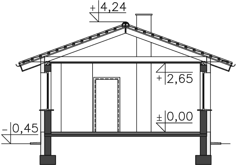 Konstrukcja dachu jest krokwiowa. Można zastąpić tradycyjne fundamenty płytą.
