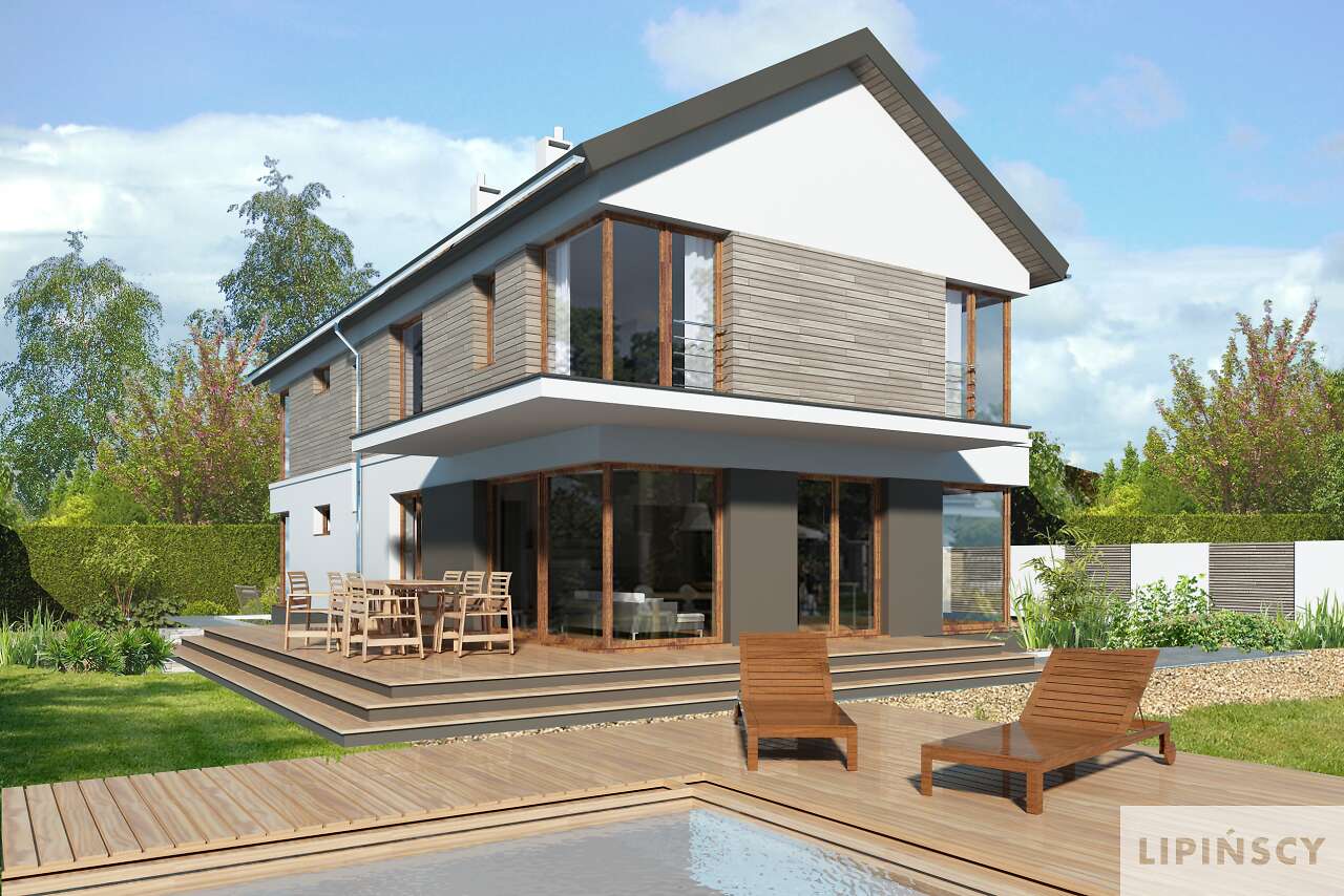Nowa wersja energooszczędnego projektu Imperia pasująca na węższe działki. Przestronny salon a kuchnią i jadalnią oraz antresolą jest niewątpliwym atutem tego projektu. Na piętrze znajdują się trzy sypialnie dla dzieci, oraz apartament rodziców z własną łazienką i garderobą. Dodatkowy pokój na parterze może być sypialnią gościnną lub gabinetem.