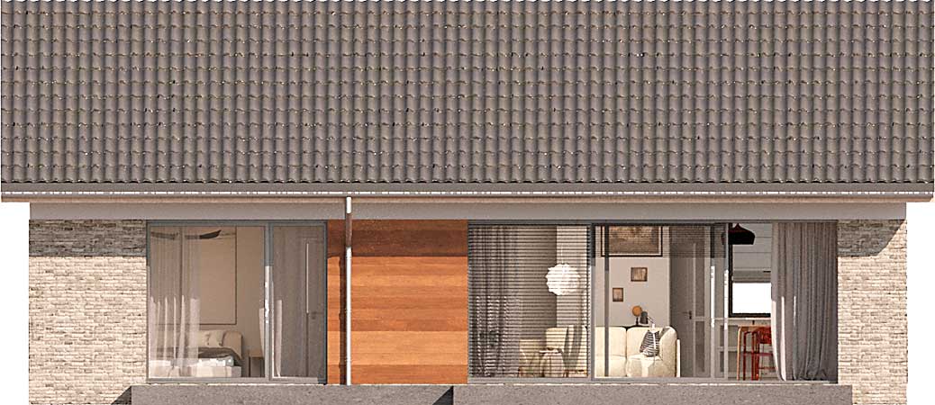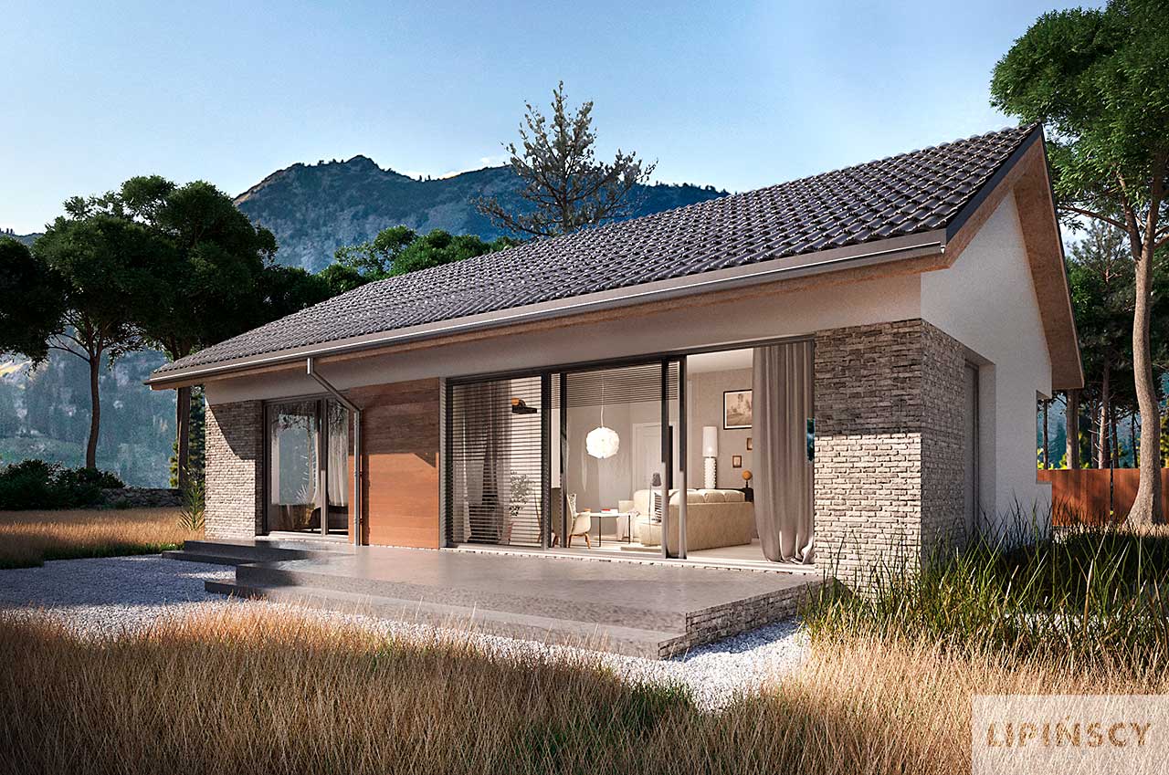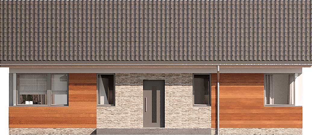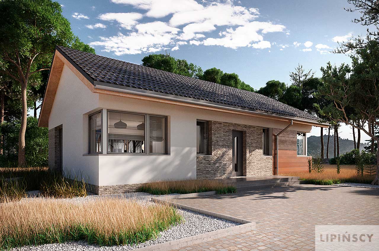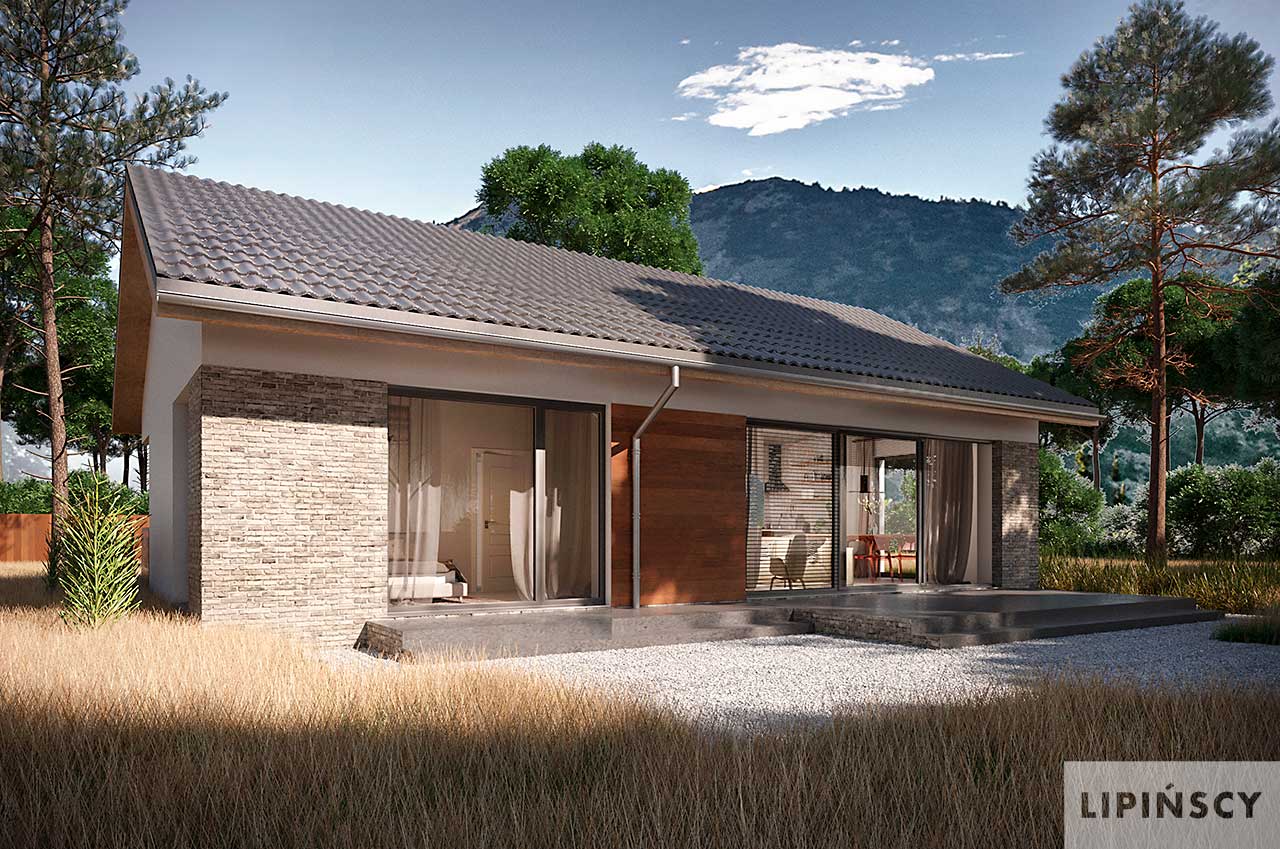 Ekonomiczny projekt domu Isera, w którym znajdziesz nieskomplikowane rozwiązania, będzie tani zarówno w budowie, jak i w eksploatacji. Mimo niewielkiej powierzchni wprowadzono tu podział na strefę dzienną z salonem i nieco wydzieloną kuchnią oraz strefę nocną z łazienką i dwiema sypialniami. Narożne okna od frontu dodają bryle nietuzinkowego charakteru. Isera to wygodny dom dla niewielkiej rodziny, ale też idealny dla singla. W projekcie przewidziano ogrzewanie pompą ciepła.