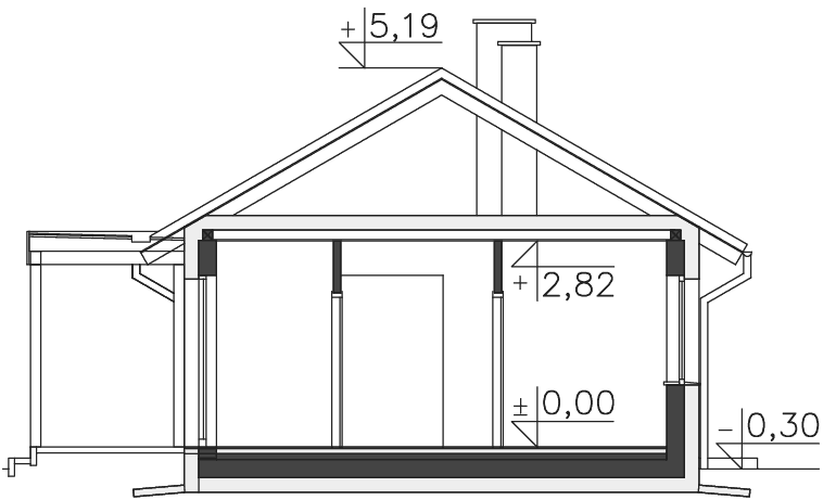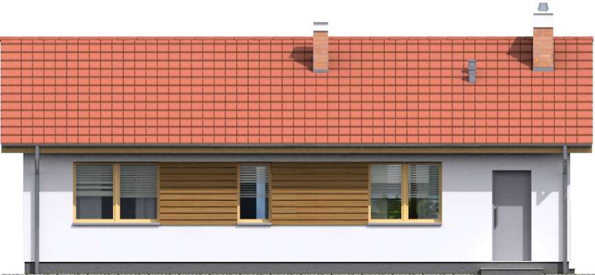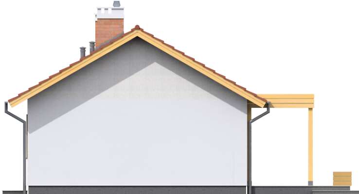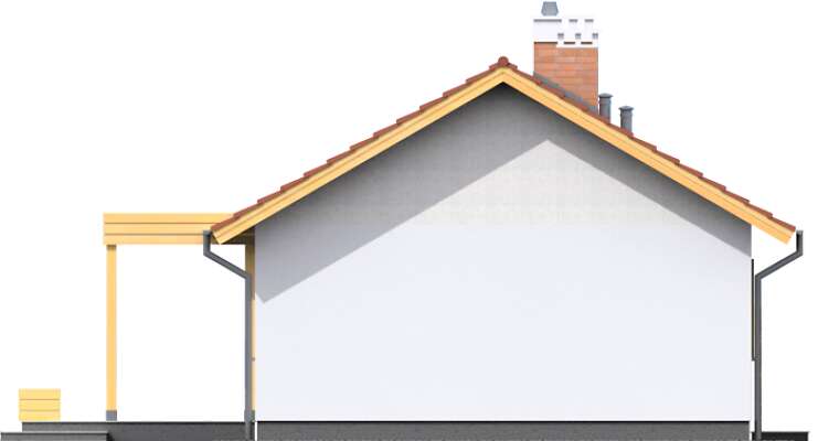 Niewielki dom parterowy, o prostej bryle i konstrukcji, tani w budowie i użytkowaniu. Idealna propozycja dla pary lub niewielkiej rodziny, która szuka projektu funkcjonalnego, przytulnego i jednocześnie szybkiego w realizacji. Dzięki lokalizacji salonu od frontu, dom z powodzeniem może stanąć na działce z wjazdem od południa. Od tej strony przewidziano również piękny, częściowo zadaszony taras. Przy otwartej na salon kuchni znajduje się podręczna spiżarnia. Do dyspozycji mieszkańców są także dwie sypialnie oraz duża, jasna łazienka. W zależności od upodobań, dom można wykończyć w wersji tradycyjnej, lub zrobić elewację w bardziej nowoczesnej odsłonie.