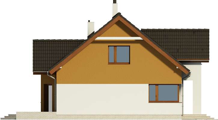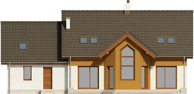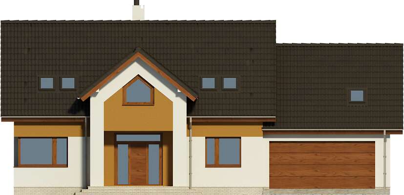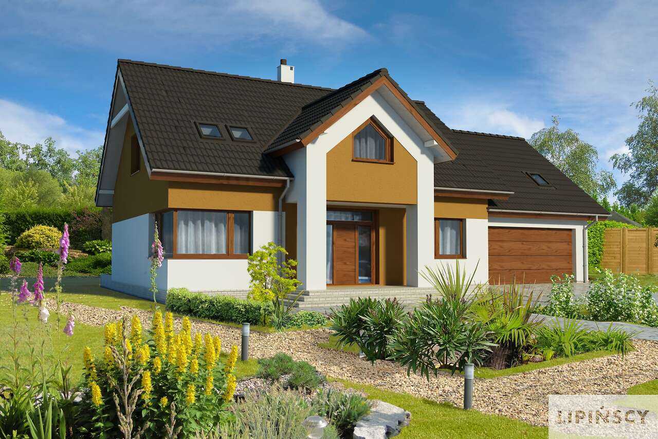 Wygodny dom z użytkowym poddaszem, doskonały dla kilkuosobowej rodziny. Na parterze zlokalizowano obszerny salon z dekoracyjnym wykuszem i miejscem na rodzinny stół, funkcjonalną, ustawną kuchnię, dużą sypialnię, łazienkę oraz pomieszczenie gospodarcze, z którego można przejść do dwustanowiskowego garażu. Za garażem znajduje się kotłownia z niezależnym wyjściem na zewnątrz. Poddasze to trzy sypialnie, dwie spore garderoby, łazienka i niewielki kącik wypoczynkowy. Przestrzenności wnętrzu nadaje antresola i duże przeszklenia, dzięki którym dom jest doskonale doświetlony.