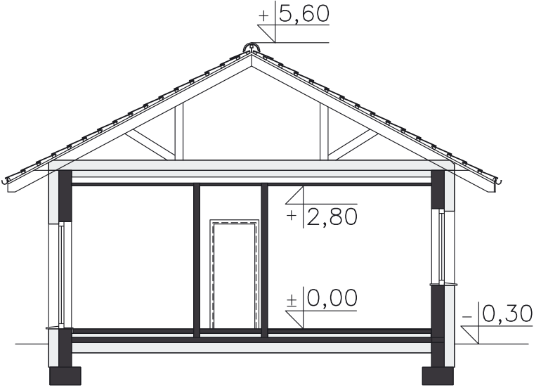 Dach - wiązary prefabrykowane, pokrycie: dachówka ceramiczna