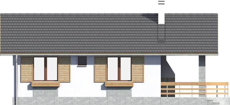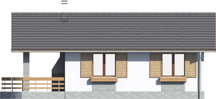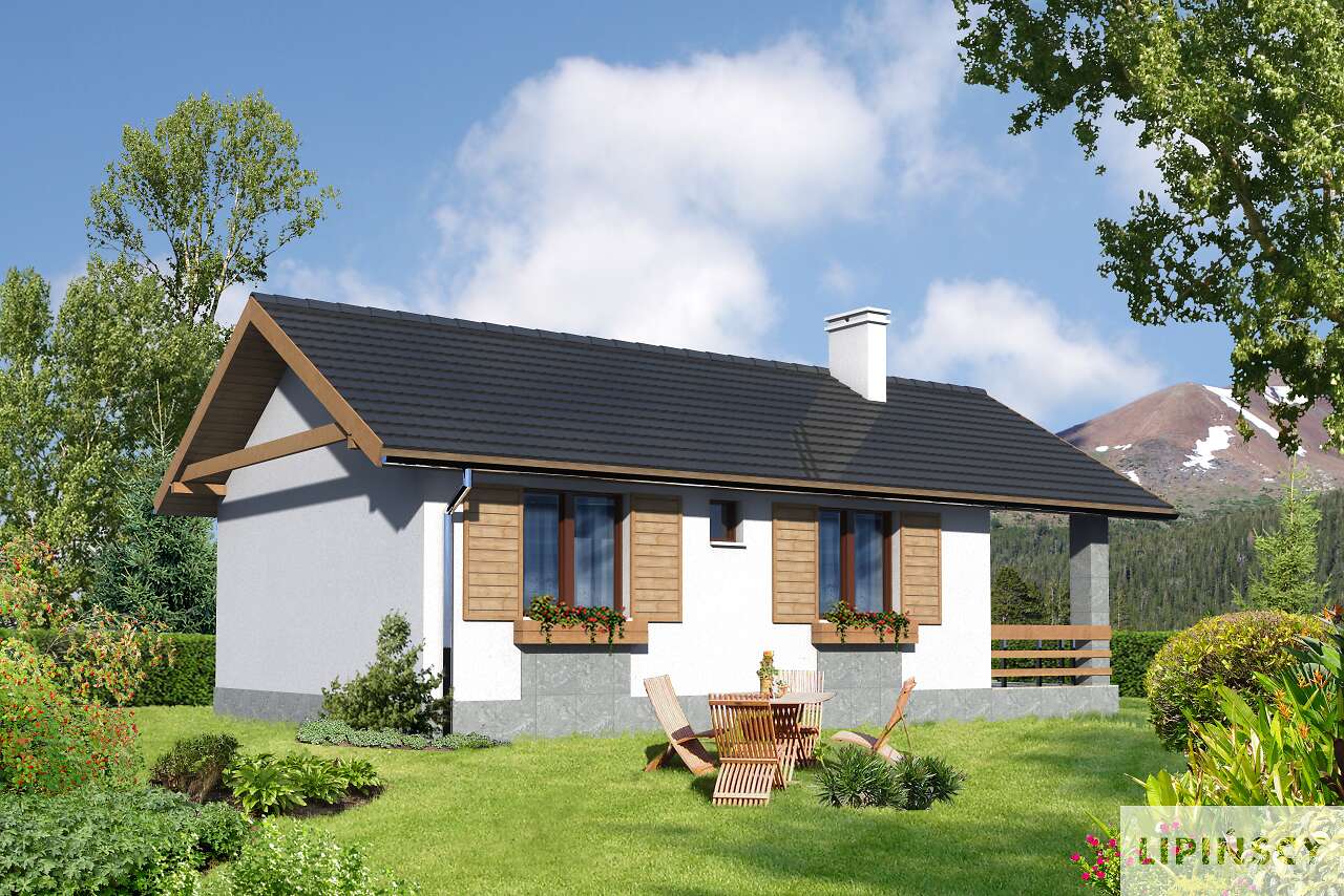 Niewielki, uroczy dom weekendowy, który doskonale wkomponuje się w każdą działkę. Funkcjonalnie rozplanowane wnętrze kryje połączony z kuchnią salonik, w którym w razie potrzeby można wygospodarować dodatkowe miejsca do spania, dwie niezależne sypialnie, łazienkę oraz wc. Kominek, przewidziany jako wewnętrzny i zewnętrzny, służący jako grill, pozwala spędzać czas na wspólnym biesiadowaniu z przyjaciółmi na tarasie.