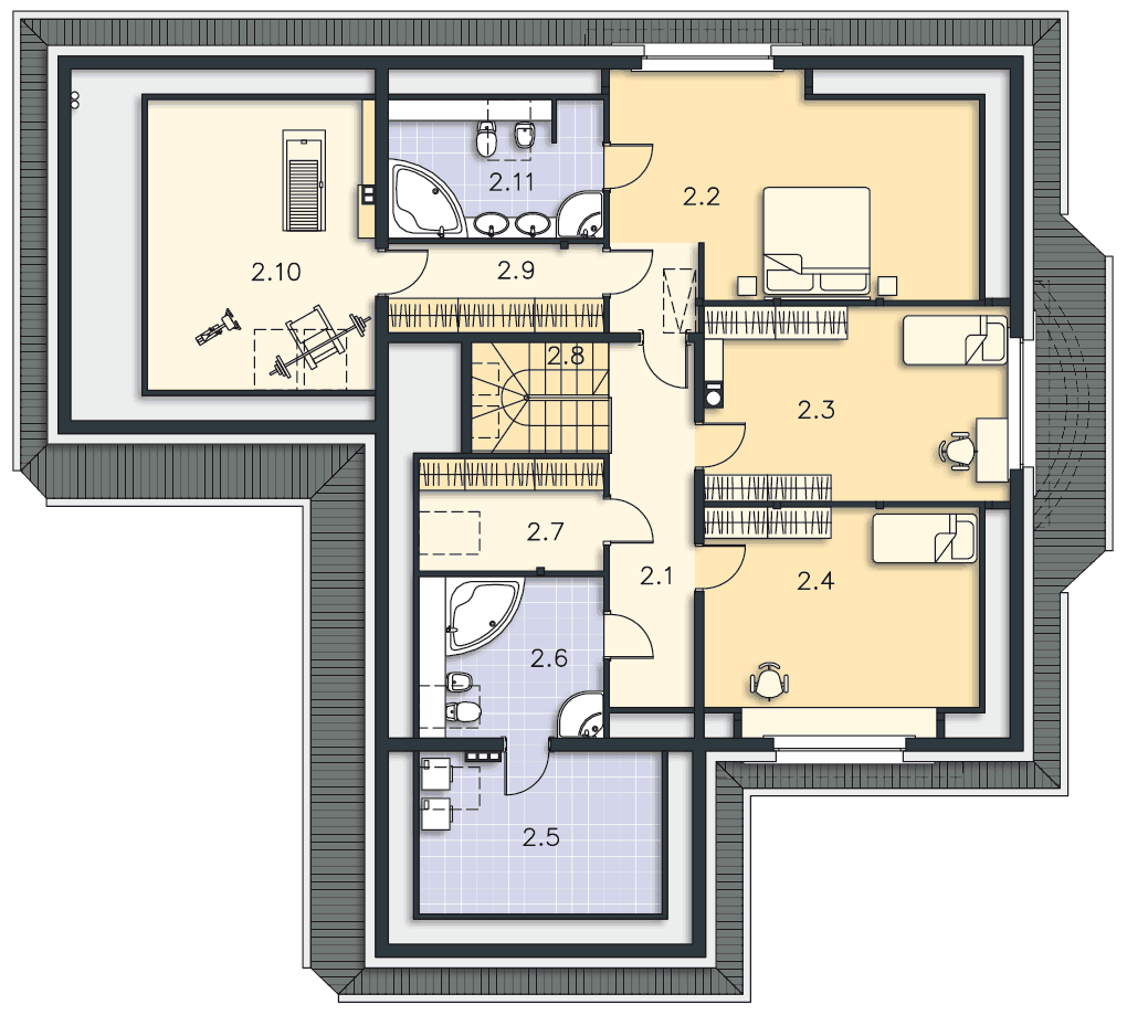 | 2.10 | Pokój ćwiczeń | 14,51m2 (23,19m2) |