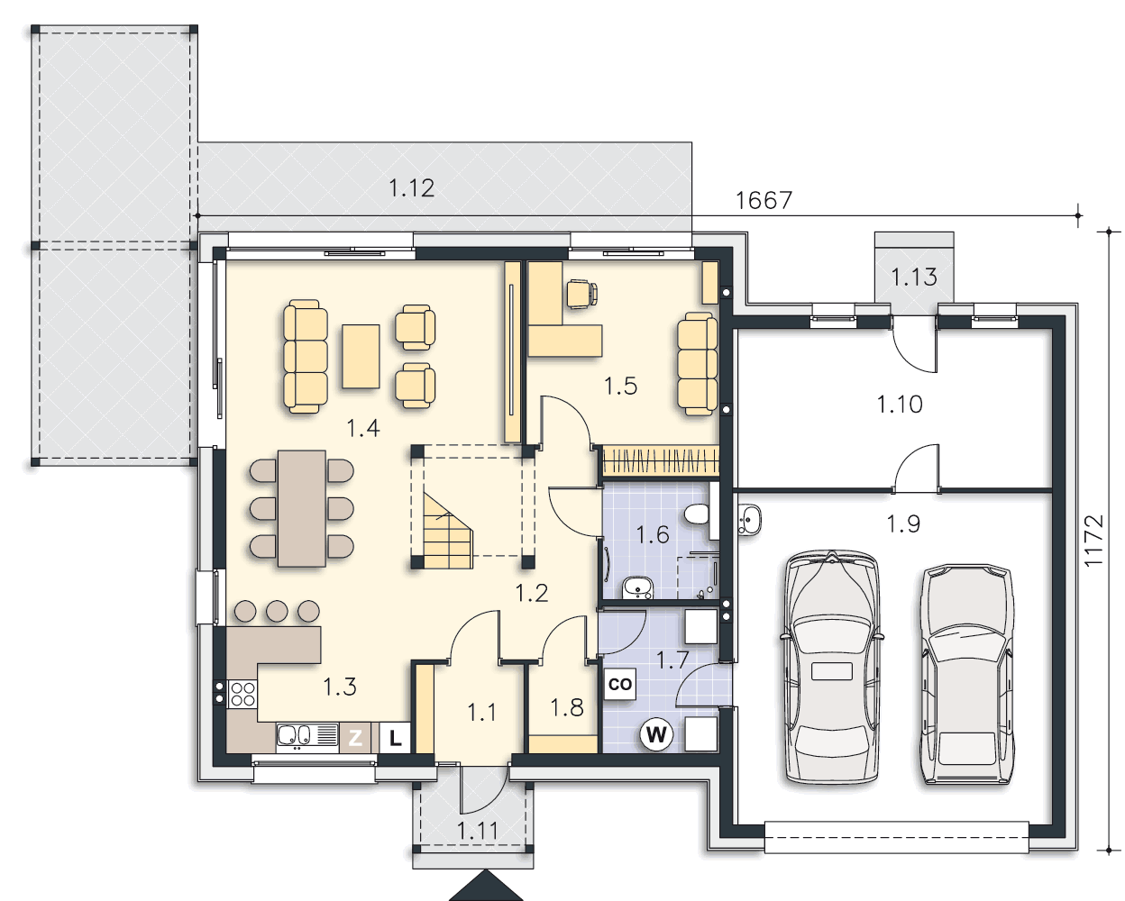 Można zmniejszyć pergolę i zmniejszyć szerokość garażu. Szczegóły w zakładce "Zmiany w projektach".