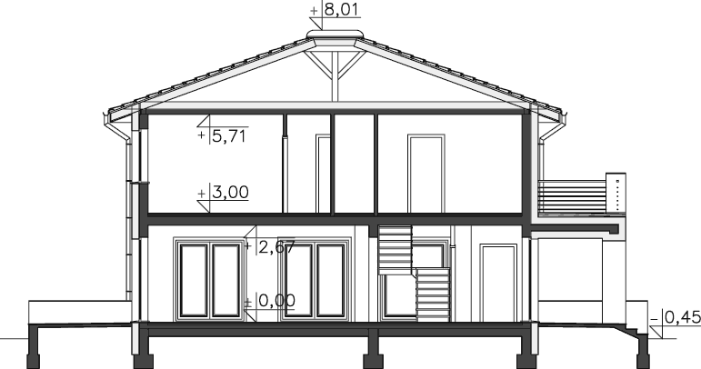 Dom łączy w sobie wiele zalet. Daje możliwość bliźniaczenia oraz daleko posuniętej adaptacji wnętrza. Niewielka powierzchnia i spad dachu sprzyja obniżeniu kosztów i zachowaniu pełnej wysokości poddasza. Równocześnie jednak dom prezentuje się bardzo estetycznie. Zastosowana technologia energooszczędna z pewnością pozytywnie odbije się na budżecie.