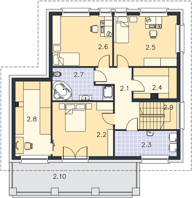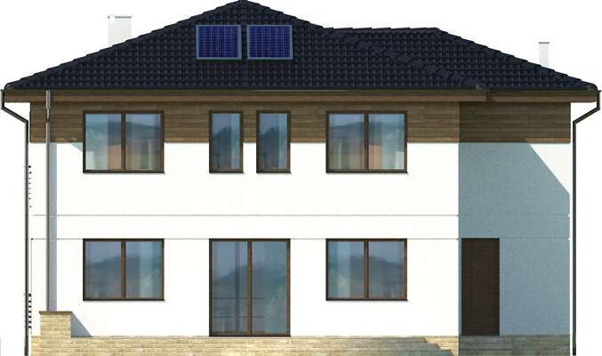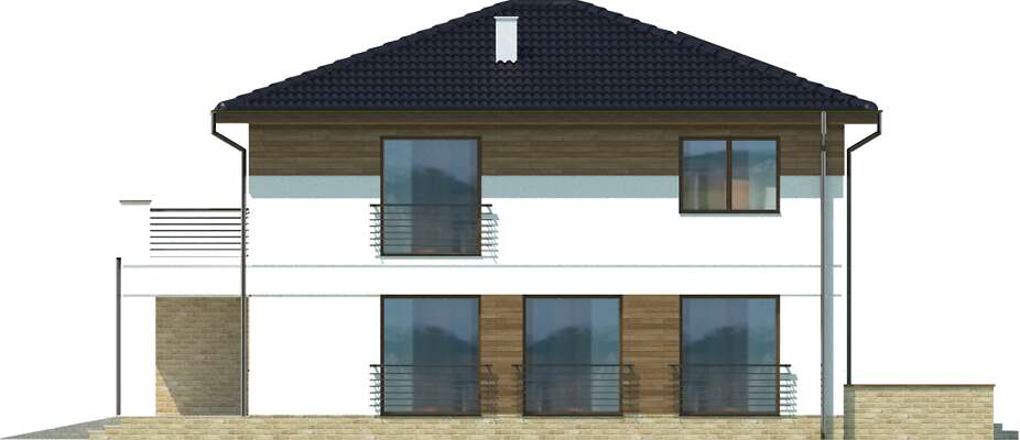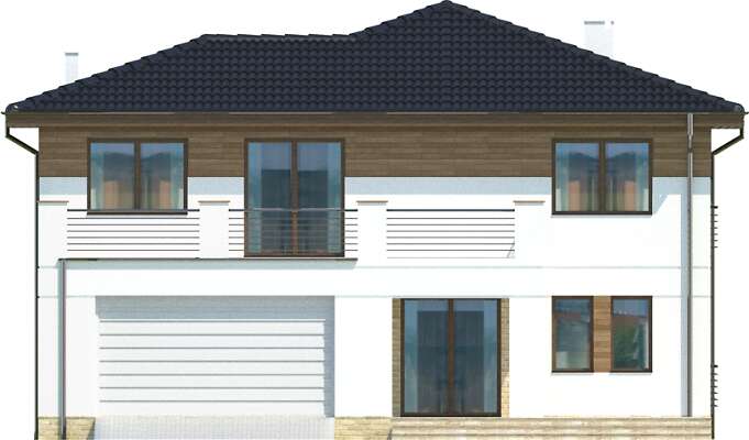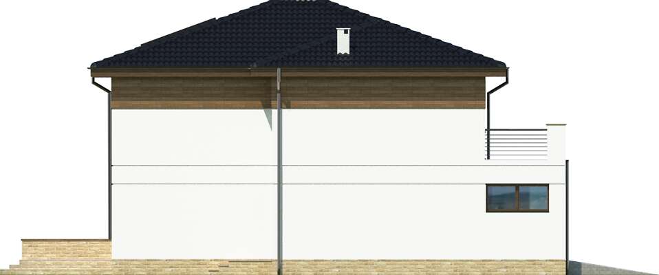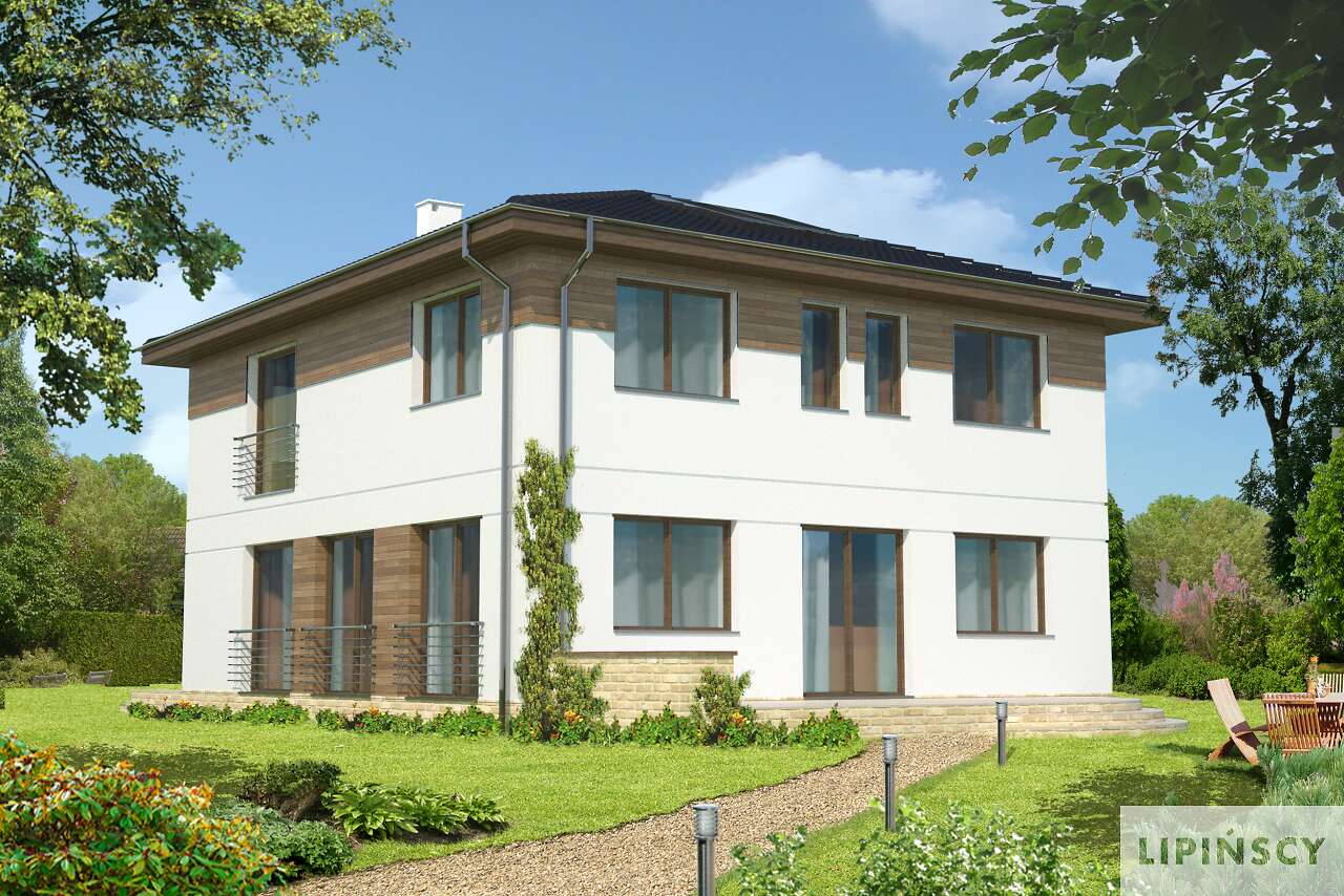 Energooszczędny dom piętrowy, który dzięki kompaktowej formie idealnie nadaje się na wąskie działki miejskie. Jednocześnie zawiera w sobie odpowiednią przestrzeń dla 3-4 osobowej rodziny. Plusem tego domu jest, oprócz dużego salonu z kominkiem, wysokie pokoje na poddaszu z pojemnymi garderobami, praktyczna pralnia oraz dwustanowiskowy garaż w bryle domu. Ponadto ten dom zużywa znacznie mniej energii do ogrzewania, co przekłada się automatycznie na dużo niższe rachunki.