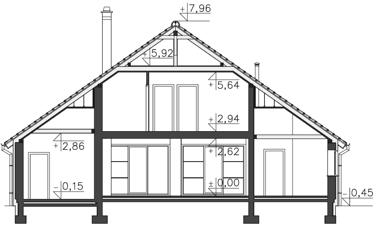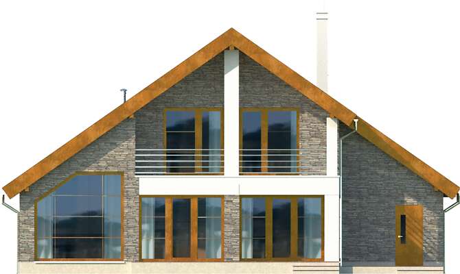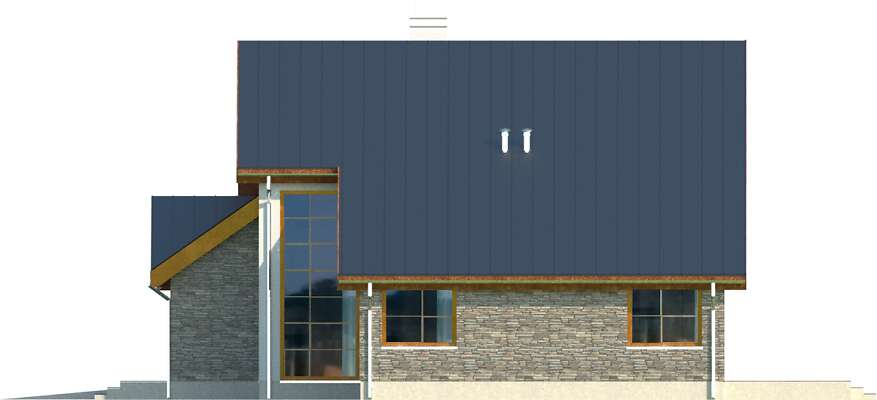 Dom dla ludzi lubiących kontakt z naturą. Oryginalny, nowoczesny, z dwuspadowym dachem o jasnych wnętrzach przewidziany dla czteroosobowej rodziny. Charakteryzuje się przejrzystym układem funkcjonalnym. Centralnym miejscem na parterze jest pokój dzienny. Z niego domownicy mają swobodny dostęp do kuchni i mniejszego pokoju. Duży pokój dzienny posiada efektowne przeszklenia tarasu, co daje wspaniały widok na ogród. Dodatkowo część tarasu przeznaczona została na ogród zimowy. Na piętrzę znajdują się dwa przestronne pokoje, garderoba, wygodna i jasna łazienka. Każdy z pokoi na piętrze posiada wejście na taras.