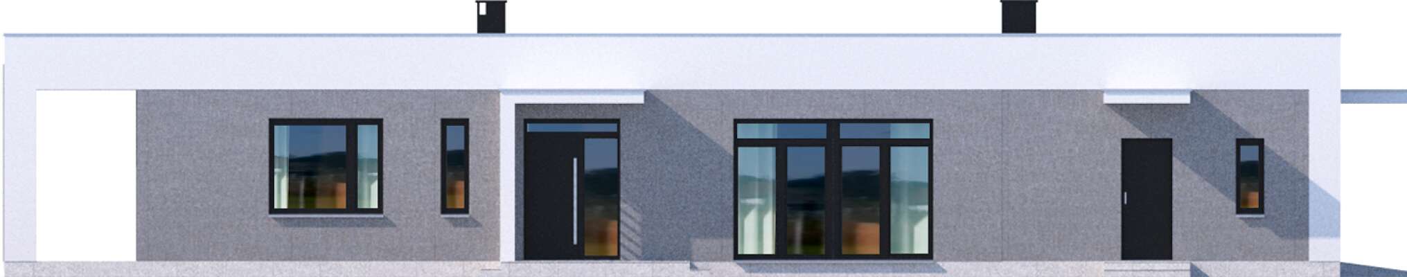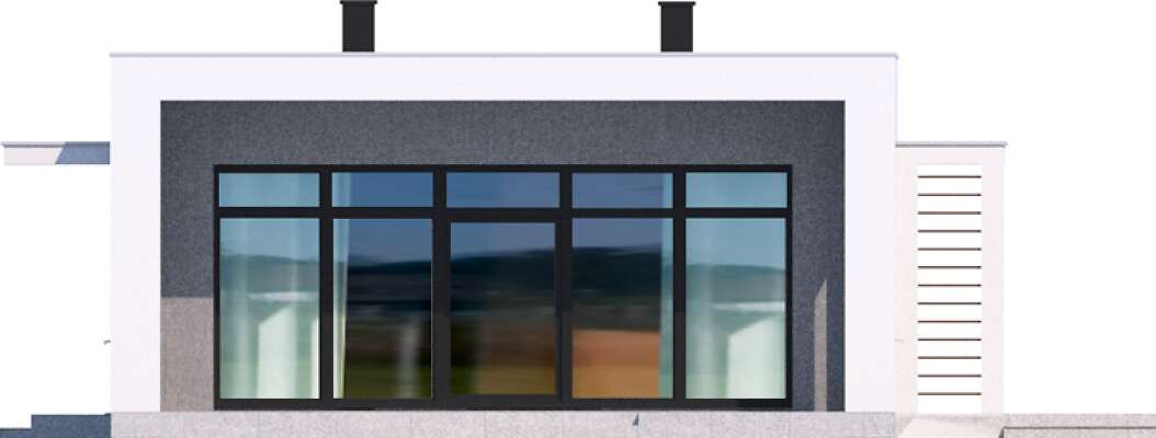 Kolejna odsłona nowoczesnego, funkcjonalnie zaplanowanego domu z płaskim dachem. Dzięki temu, że wjazd do dwustanowiskowego garażu zlokalizowany został z boku, dom można wybudować nawet na niezbyt szerokiej działce. Duże przeszklenia są nie tylko bardzo dekoracyjne, ale przede wszystkim doskonale doświetlają przestronne wnętrze, w szczególności salon i otwartą kuchnię, obok której znajduje się zadaszony, przestronny taras. Trzy sypialnie stanowią prywatną część domu. Do dyspozycji mieszkańców jest również wygodna łazienka, osobna toaleta, a obok kuchni zaplanowano podręczną spiżarnię. W projekcie przewidziano ogrzewanie kotłem na gaz. Możliwa jest zmiana ogrzewania na pompę ciepła.