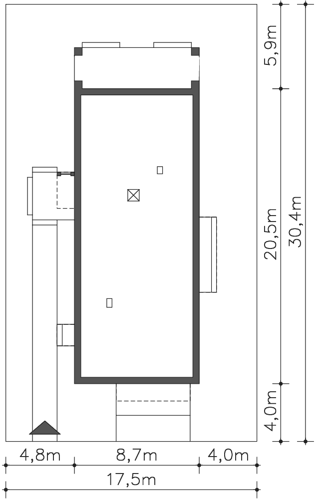 | Min. szerokość działki | 17,50m x 30,40m |