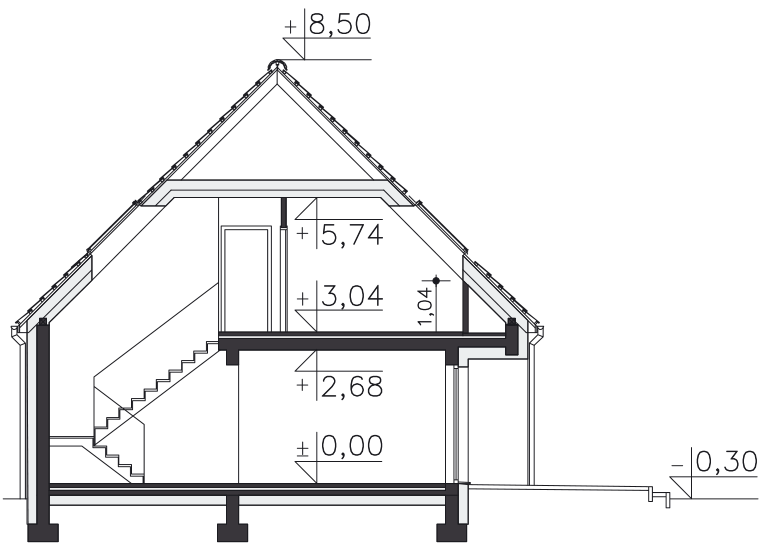 Dach - tradycyjna więźba ciesielska, pokrycie: dachówka cementowa lub ceramiczna