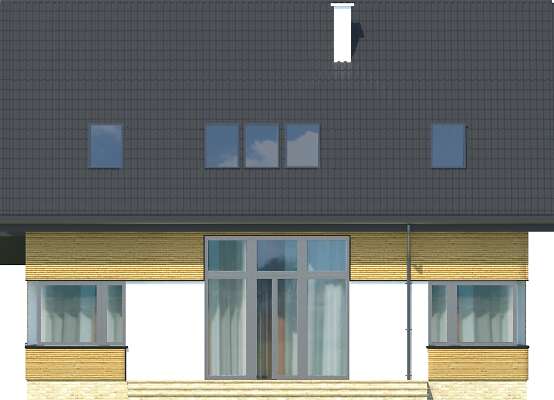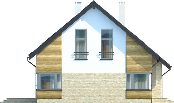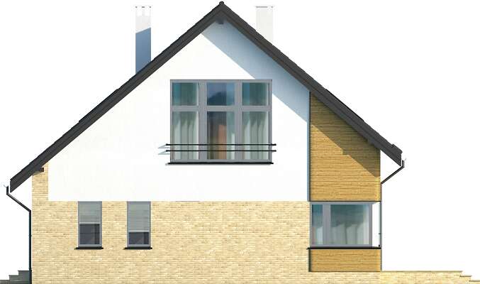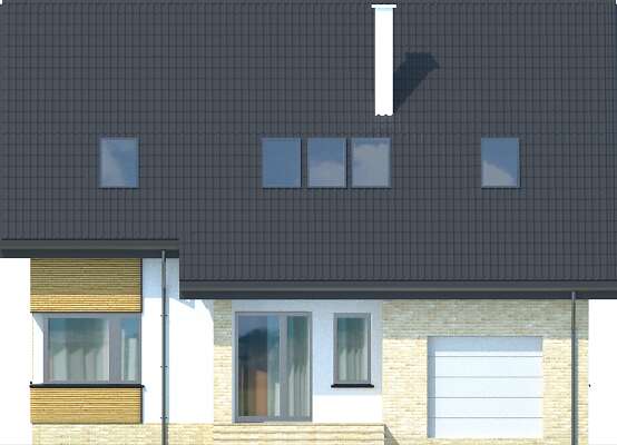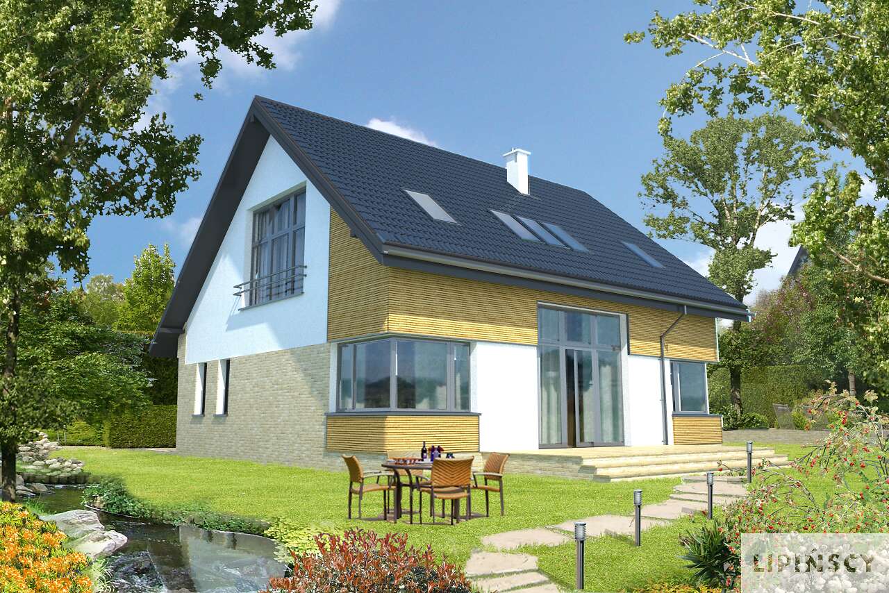 Energooszczędny dom Lucerna z użytkowym poddaszem, posiada prostą bryłę urozmaiconą ciekawym podziałem elewacji, w nietuzinkowy sposób zestawiającym ze sobą kamienne i drewniane okładziny, cegłę klinkierową, metalowe barierki portfenetrów. Garaż jest wkomponowany w bryłę budynku w taki sposób, że oprócz przejścia bezpośrednio do domu, osłania strefę wejściową od zachodnich wiatrów, nie zajmując przy tym dodatkowego miejsca na działce. Nowoczesny charakter domu podkreślają narożne okna parteru doświetlające kuchnię, salon oraz gabinet, dachowe okna połaciowe, które szczególnie nad antresolą jadalni pełnią dodatkowo funkcję ozdobną oraz okazałe rozsuwane drzwi tarasowe. Znalazło się również miejsce na pomieszczenia pomocnicze - schowek przy wiatrołapie, pomieszczenie gospodarcze połączone z garażem oraz spiżarkę. Trzy duże sypialnie na poddaszu, w tym jedna z własną garderobą i łazienką pozwalają wygodnie urządzić strefę prywatną.