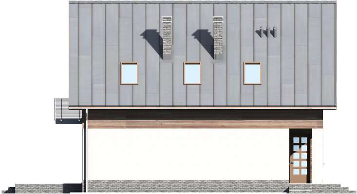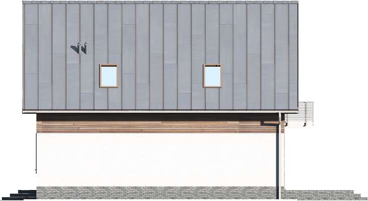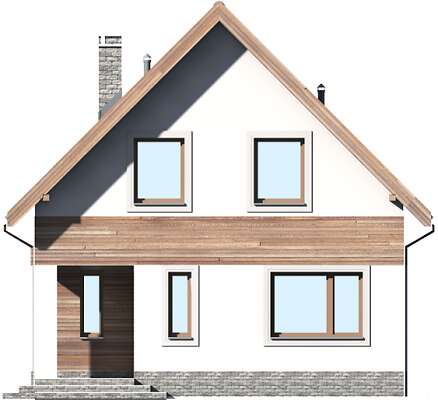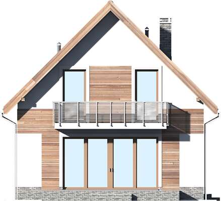 Prosta bryła i dwuspadowy dach sprawiają, że jest to dom niedrogi w realizacji. Doskonale rozplanowana przestrzeń, wyraźny podział stref na dzienną oraz nocną, dwie duże łazienki oraz dodatkowo wc, a także pom. gosp. i garderoba wpływają znacznie na komfort użytkowania domu. W projekcie przewidziano duży salon z kominkiem, z miejscem na duży stół i z wyjściem na taras. Dzięki zastosowaniu dużych przeszklonych drzwi i otwartej przestrzeni na parterze, parter jest doskonale oświetlony. Zastosowanie w elewacji elementów drewnianych, cegły klinkierowej oraz szklanych i metalowych poręczy balkonów nadaje budynkowi nowoczesnego charakteru.
