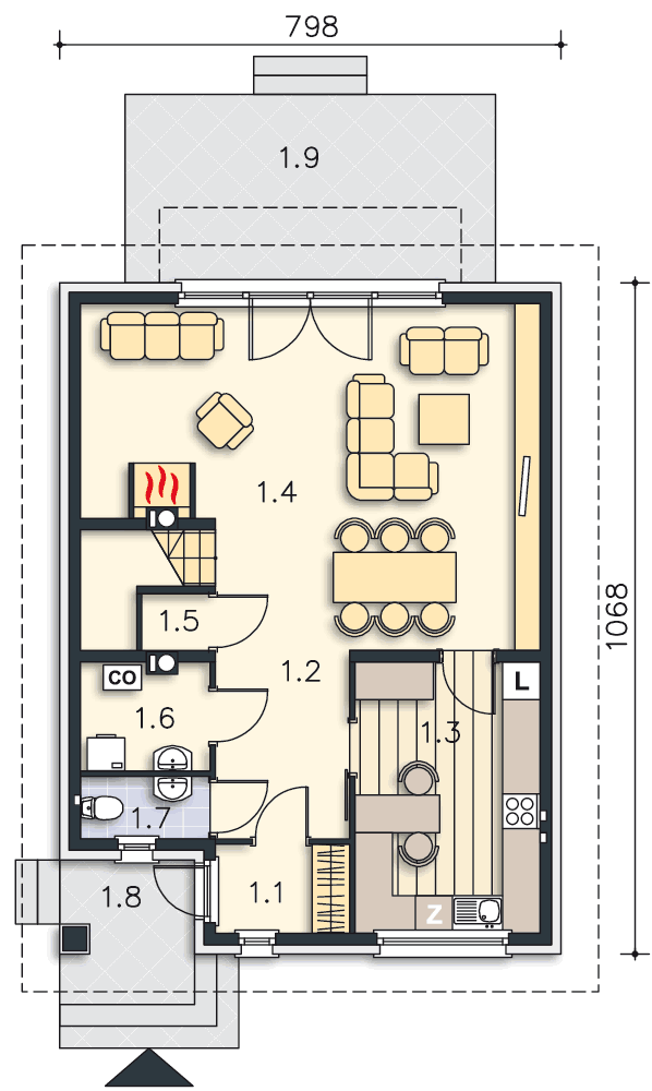 | 1.9 | Taras | 17,64m2 |