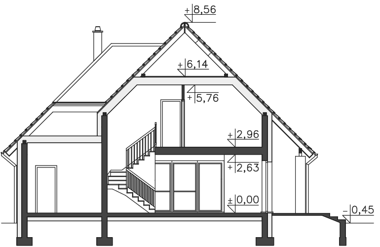 Wysokość głównego okapu dachu wynosi 4,3m. Wszystko zależy od zapisu w WZ i interpretacji urzędnika. W projekcie nie przewidujemy ogrzewania podłogowego. Można je wykonać we własnym zakresie.