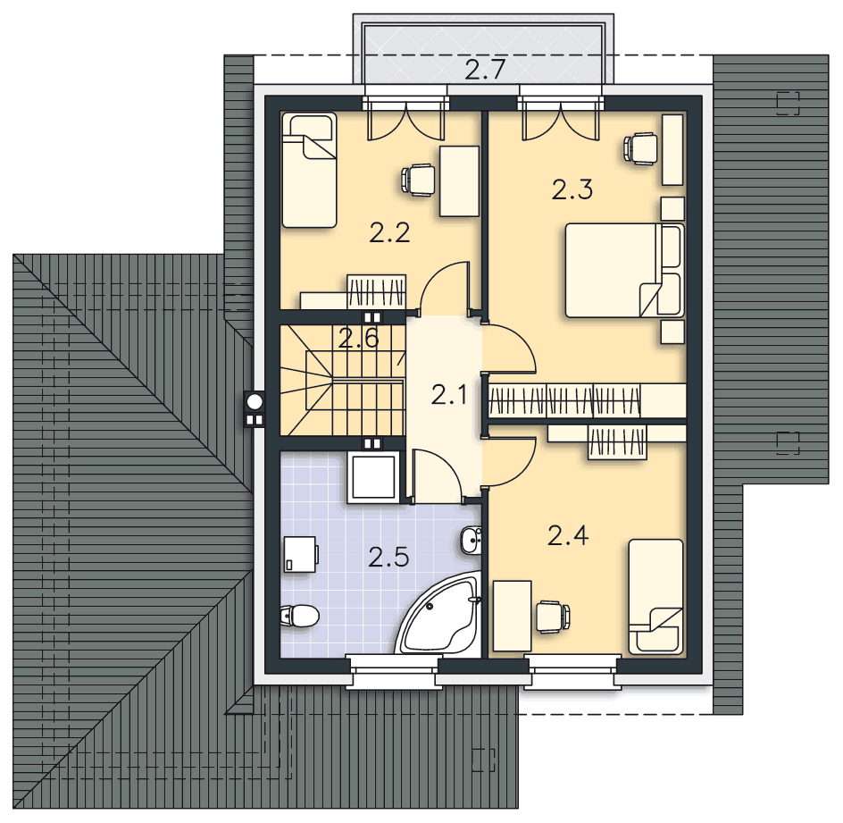 Okna połaciowe oczywiście można dodać, choć pod względem doświetlenia poddasza, nie ma takiej potrzeby.