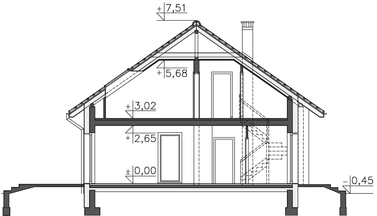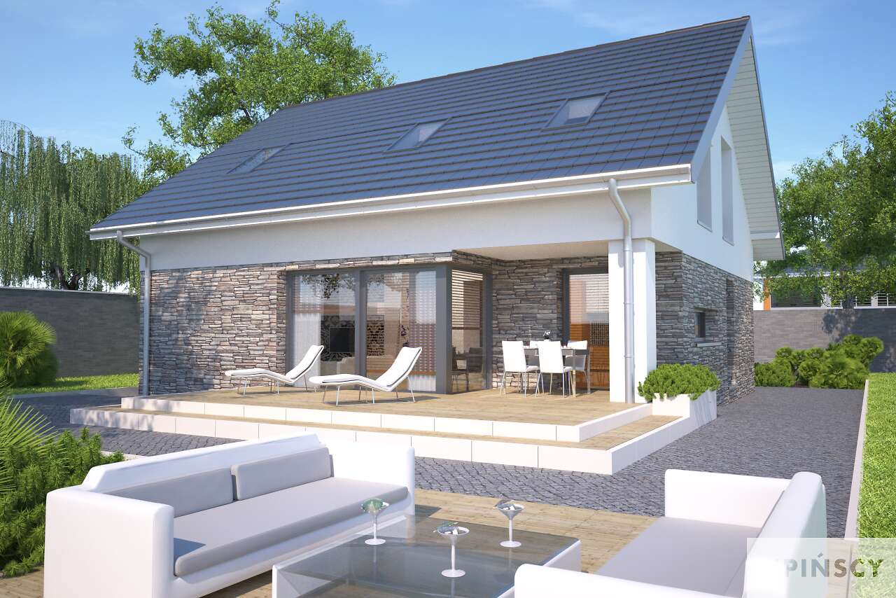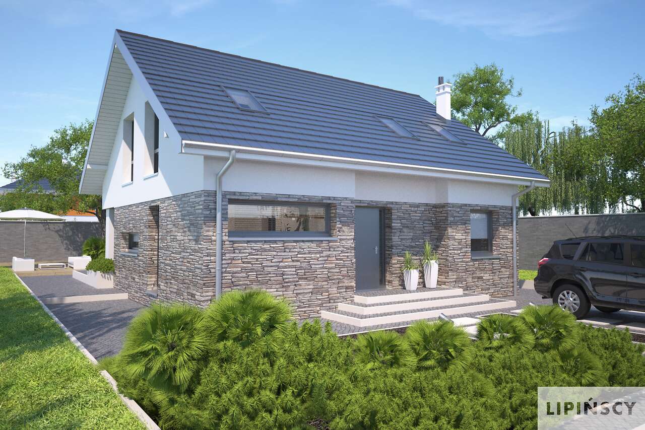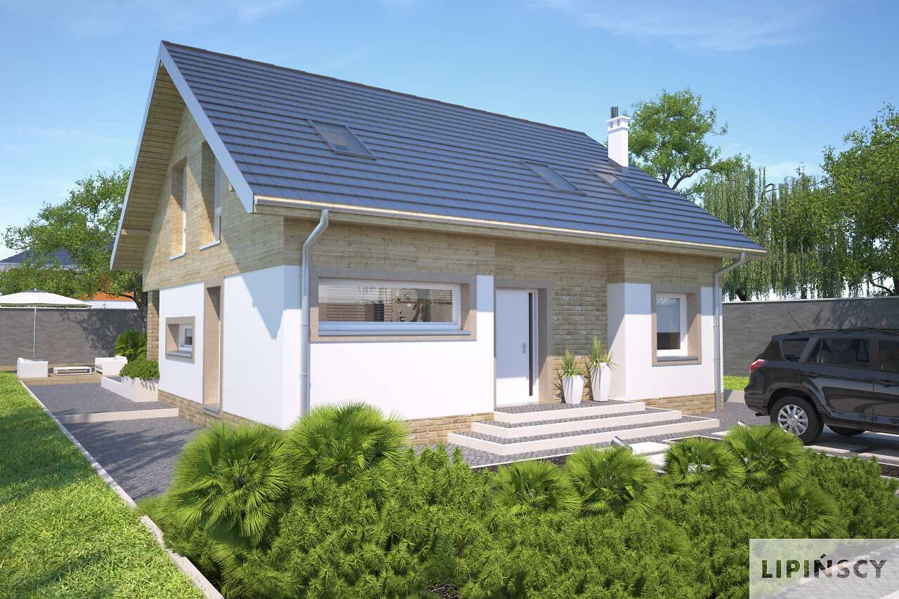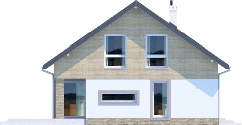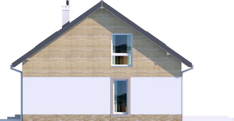 To niewielki, wygodny dom o zwartej bryle, w której szczególną uwagę zwraca piękny, przeszklony narożnik w elewacji ogrodowej, co sprawia, że ogród mamy niemal na wyciągnięcie ręki. Do dyspozycji mieszkańców jest obszerny salon, który – w razie potrzeby można połączyć lub oddzielić od kuchni, gabinet, toaletę i pomieszczenie gospodarcze – to parter. Na poddaszu zlokalizowano trzy ustawne sypialnie, dużą łazienkę oraz pomieszczenie gospodarcze. Projekt Meribel to doskonała propozycja dla osób szukających niewielkiego, prostego i nowoczesnego domu. W projekcie przewidziano ogrzewanie kotłem na gaz. Możliwa jest zmiana ogrzewania na pompę ciepła.