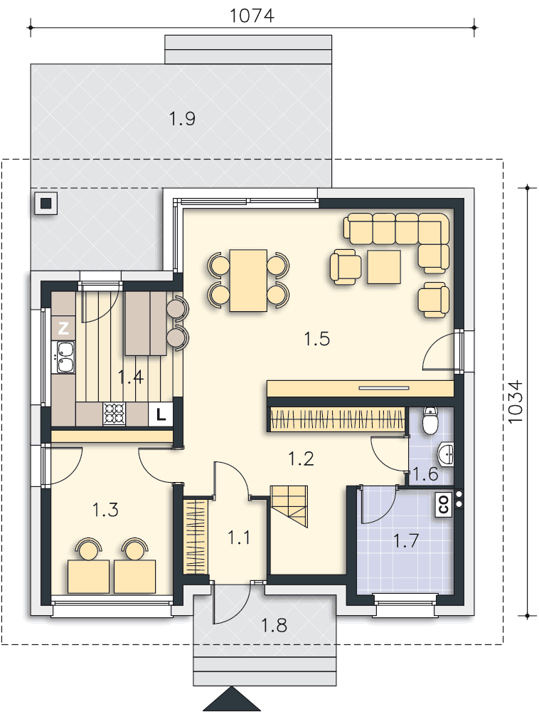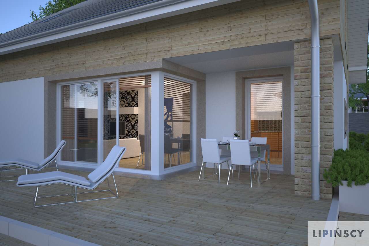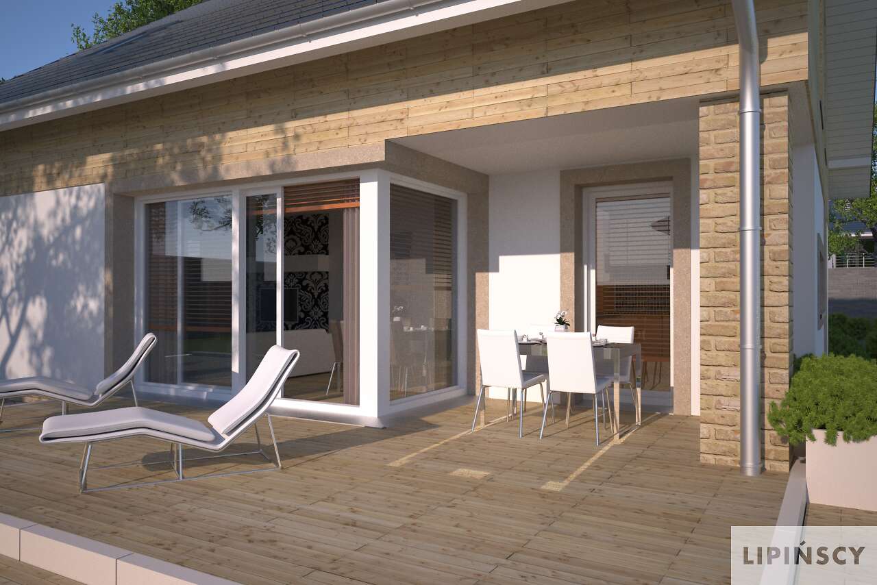 SkomentujMożna powiększyć salon i kuchnię o zadaszoną część tarasu.