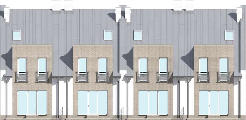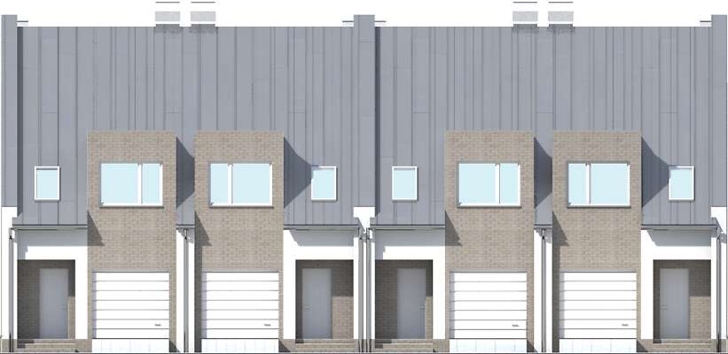 Dom w zabudowie szeregowej, z użytkowym poddaszem. Parter przeznaczono na pokój dzienny z wyjściem na taras i z aneksem kuchennym, oraz łazienkę. W bryłę wkomponowano także garaż na jedno auto. Poddasze mieści trzy pokoje i łazienkę, w której zlokalizowano kocioł gazowy. Powierzchnia i funkcjonalne rozplanowanie wnętrza pozwala na wygodne użytkowanie domu przez 3, 4 osobową rodzinę.