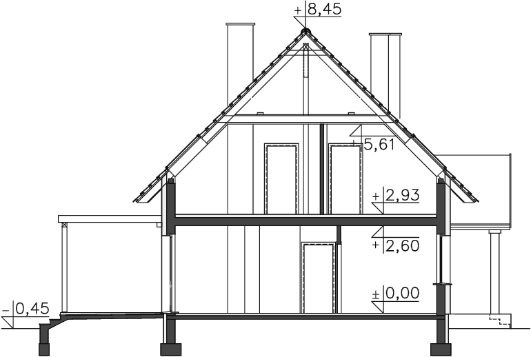 | Kąt nachylenia dachu | 45° |