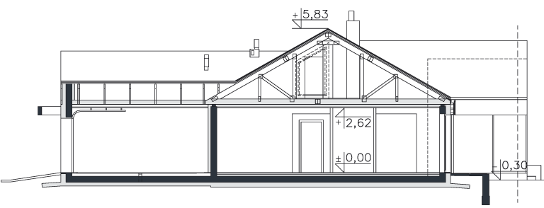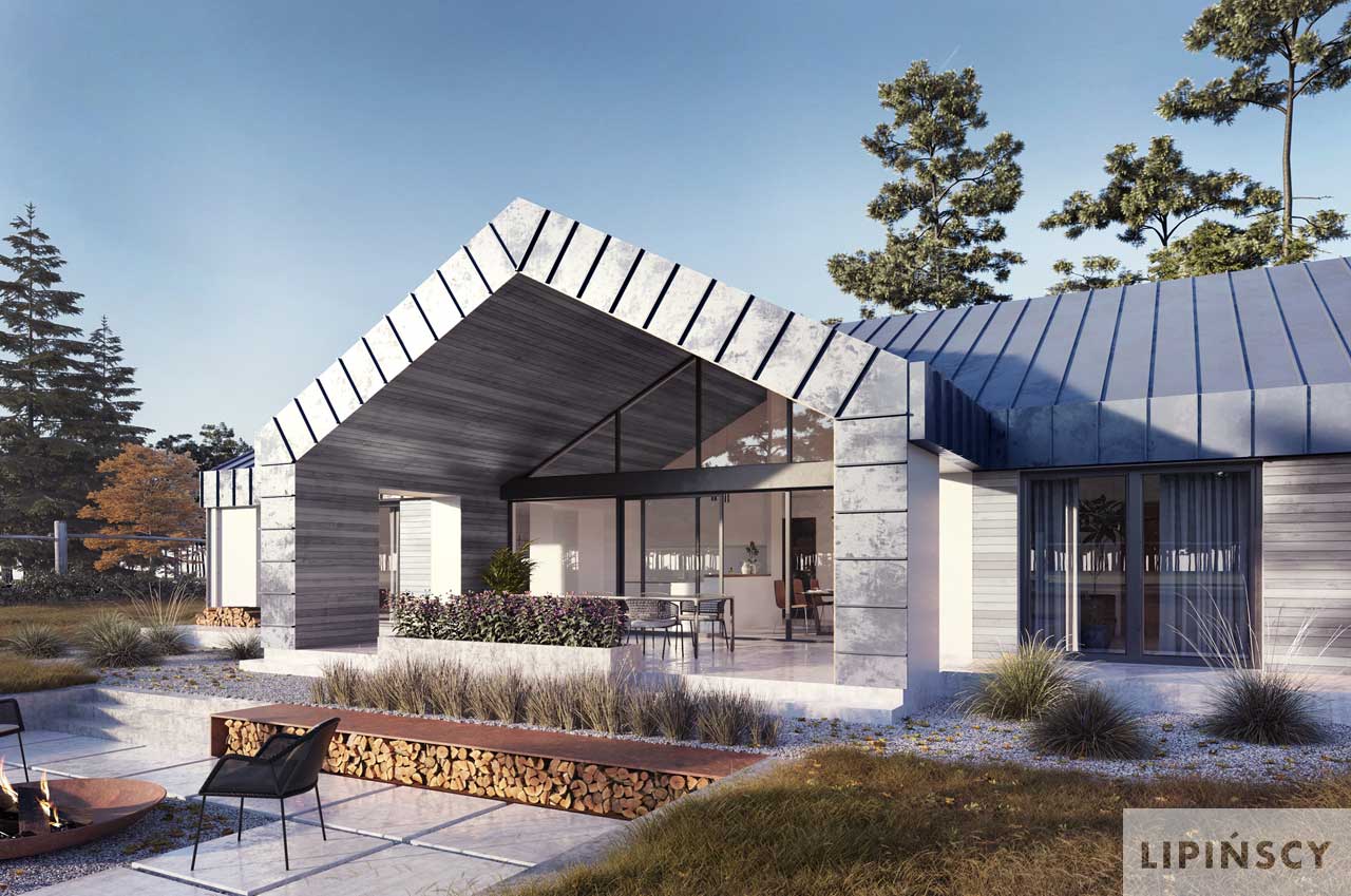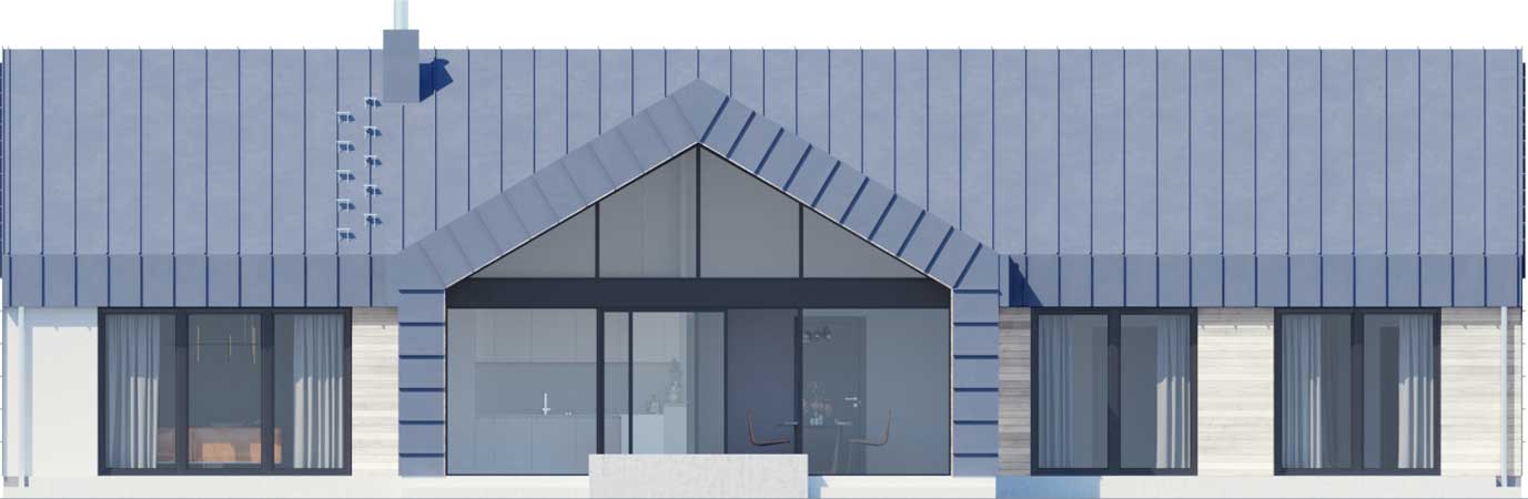 Trzecia odsłona eleganckiego i efektownego projektu Mindelo DCB136 . Obszerna część dzienna z salonem, jadalnią i dużą, kuchnią sprzyja odpoczynkowi, wspólnemu przygotowywaniu posiłków i podejmowaniu gości. Strefa wspólna otwiera się ogromnymi przeszkleniami na duży taras w sporej części zadaszony, co jeszcze dodatkowo ją powiększa. Część nocna to trzy duże sypialnie i przestronna łazienka. Do domu przynależy również spore pomieszczenie gospodarcze, z którego można przejść do dwustanowiskowego garażu bez konieczności wychodzenia na zewnątrz budynku. W projekcie przewidziano ogrzewanie kotłem na gaz. Możliwa jest zmiana ogrzewania na pompę ciepła.
