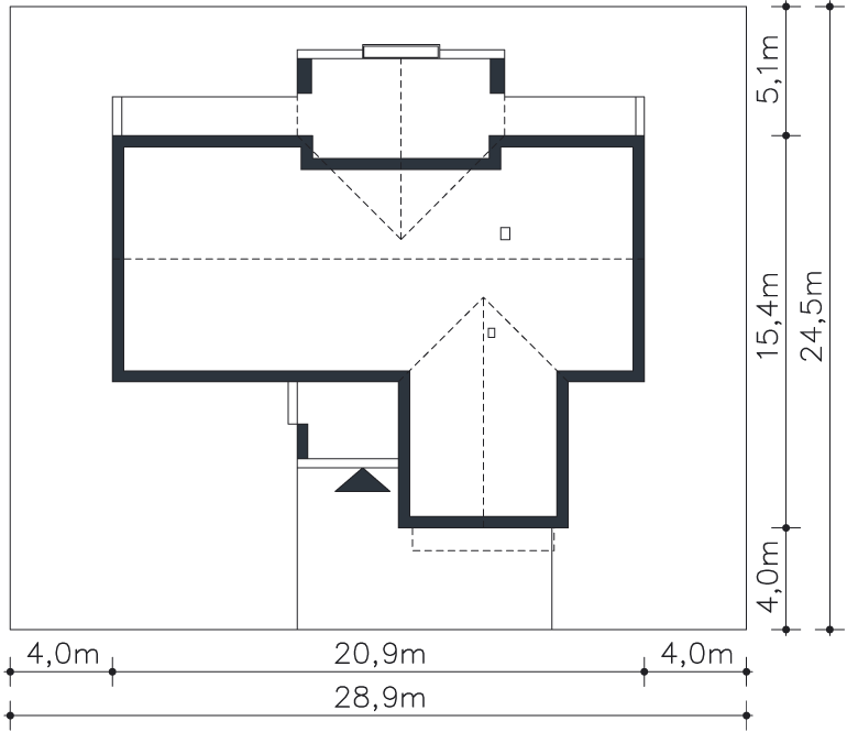 Grafika przedstawia minimalne wymiary działki. Aby sprawdzić, czy dom może być realizowany na konkretnej działce należy uzyskać Wypis i Wyrys z Miejscowego Planu Zagospodarowania Przestrzennego lub jeśli na danym terenie nie ma planu – Decyzję o warunkach zabudowy. Wszystkie projekty wymagają adaptacji do warunków miejscowych przez projektanta lokalnego.