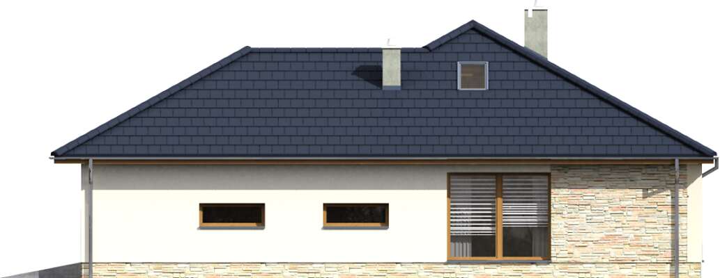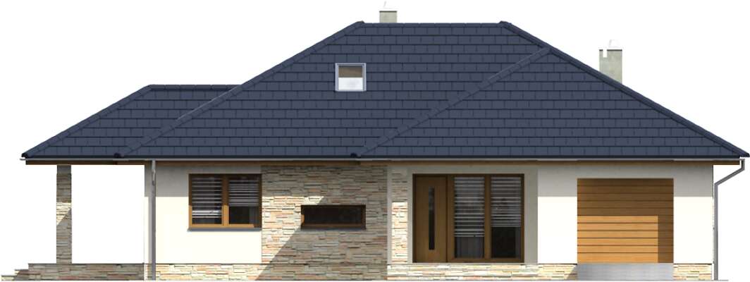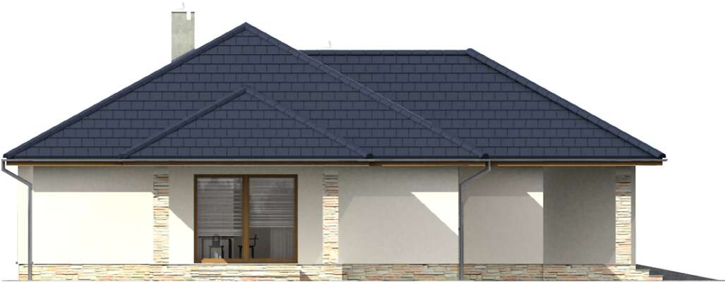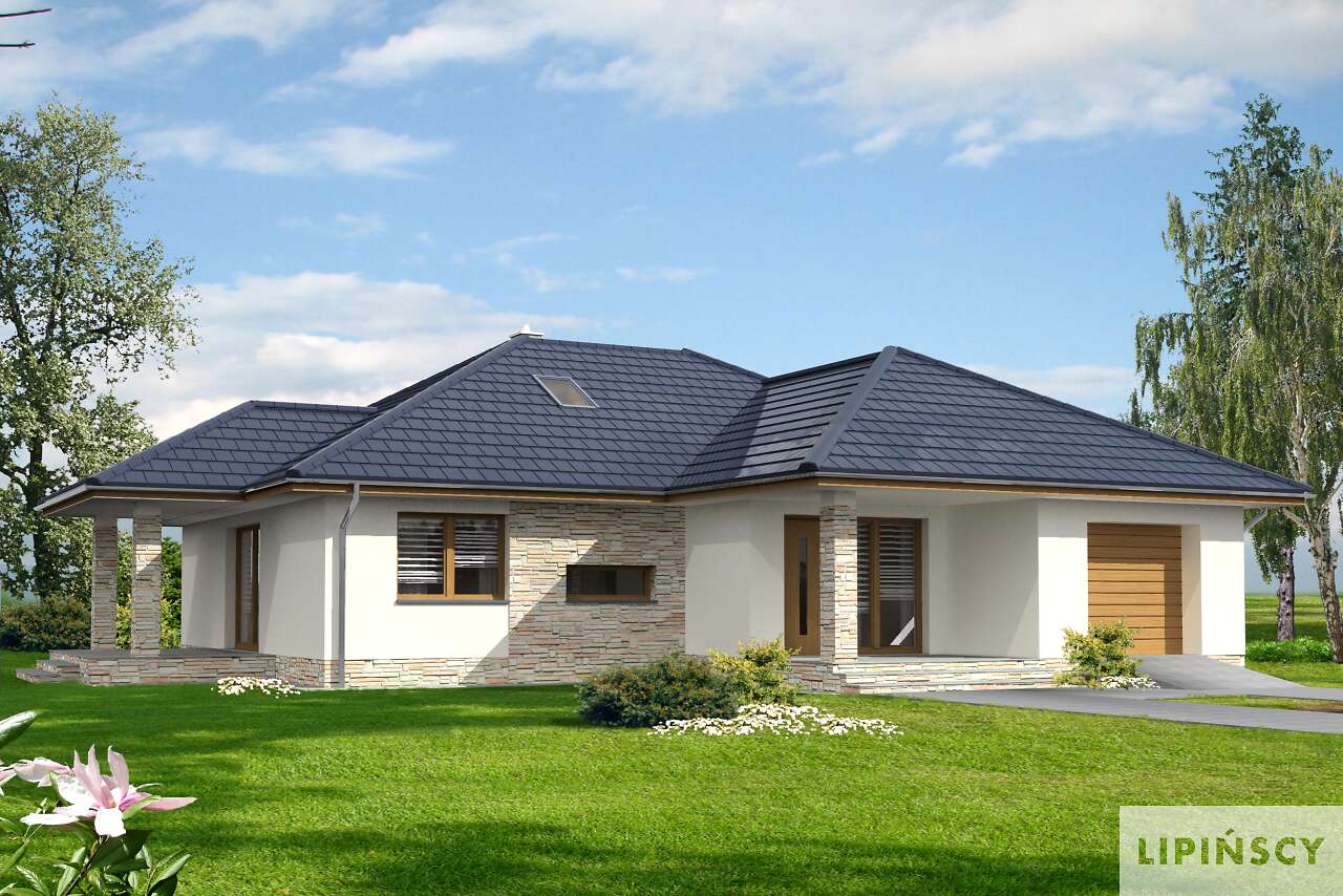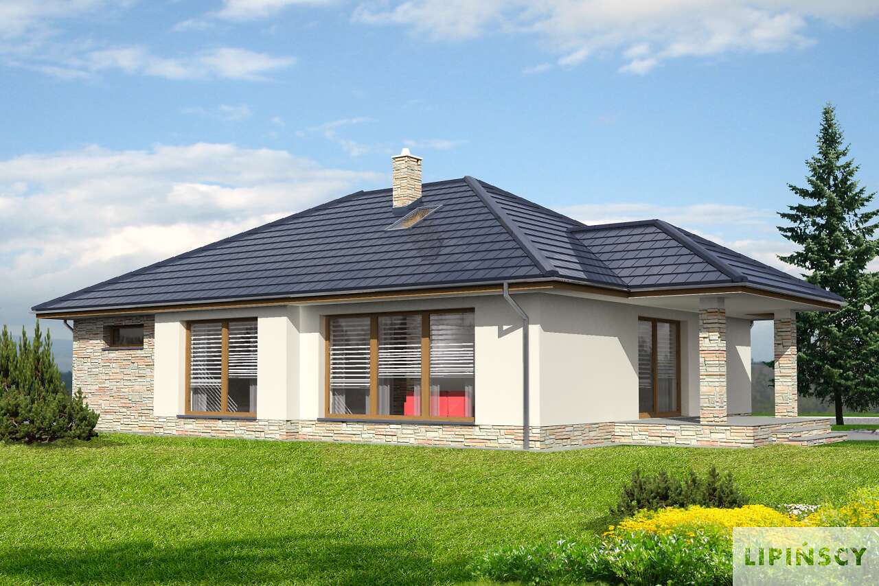 Parterowy dom energooszczędny, w którym wygoda mieszkańców zapewniona jest zarówno w sferze funkcjonalności, jak i energooszczędnego standardu. Projekt ten ucieszy inwestorów, którzy szukają domu, gdzie mogliby pracować w zacisznym, wygodnym gabinecie. I w projekcie Monterey taki gabinet został zaplanowany. Oprócz niego jest też oczywiście duży, przestronny salon, z miejscem na rodzinny stół i kominkiem – doskonale podkreślający przytulność wnętrza. Otwartą na salon kuchnię dzieli od części dziennej półwyspu, gdzie można przysiąść w trakcie codziennych posiłków. W strefie nocnej zaplanowano wygodną sypialnię z własną łazienką. W bryłę domu wkomponowano garaż na jedno auto, co sprawia, że bryła budynku jest harmonijna i elegancka, ale nie pozbawiona nowoczesnego rysu.