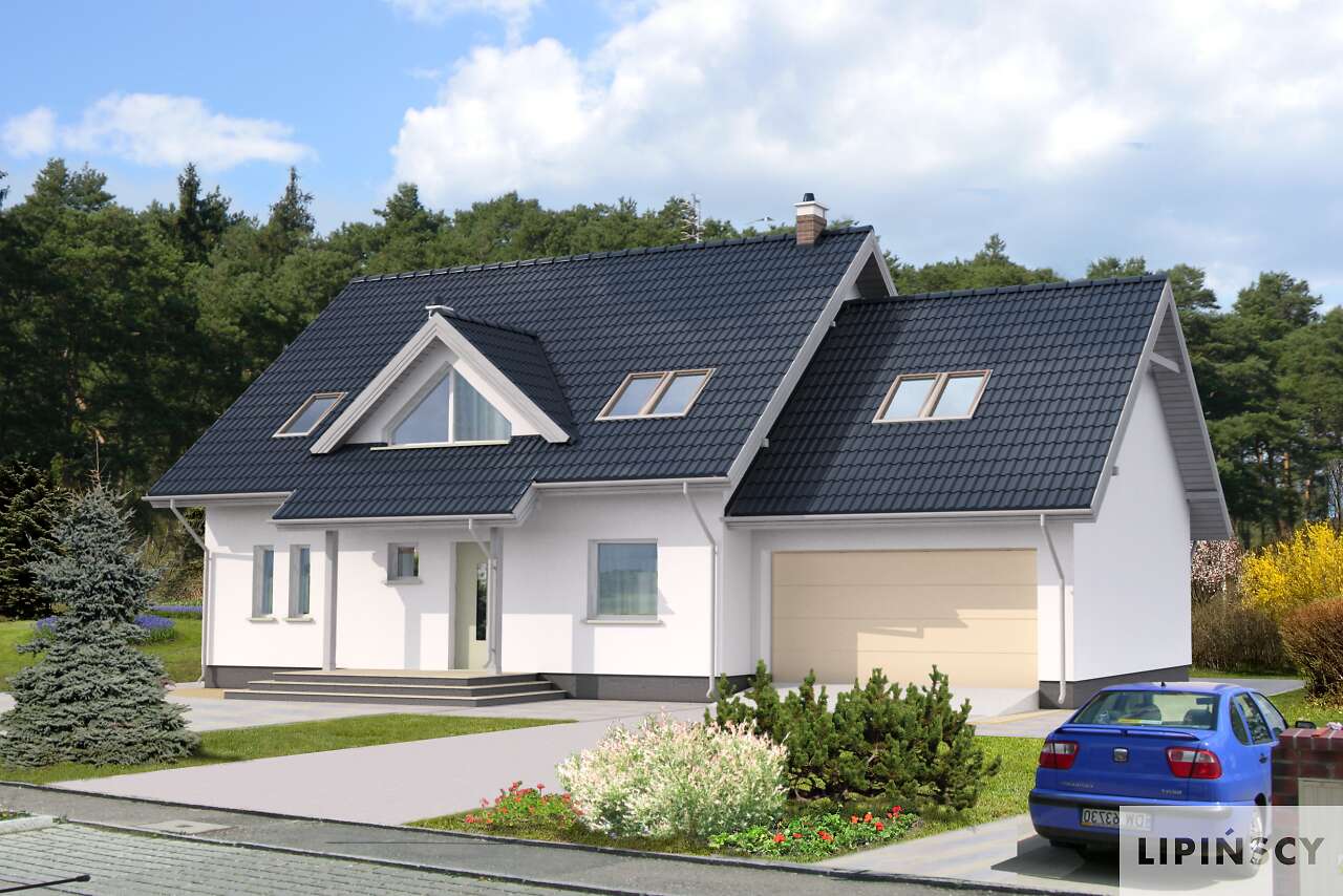 Komfortowy dom energooszczędny, który zapewni wygodne użytkowanie licznej rodzinie. Oprócz dużego salonu z kominkiem, gdzie poprzez duże przeszklenia do wnętrza wpada mnóstwo światła, a także przenika zieleń ogrodu, na parterze znajduje się także wygodna kuchnia ze spiżarnią. Na poddaszu natomiast są trzy sypialnie i dodatkowe studio, które może być np.: pokojem do zabaw dla dzieci. Dostępna jest wersja z garażem jednostanowiskowym (DCP180).