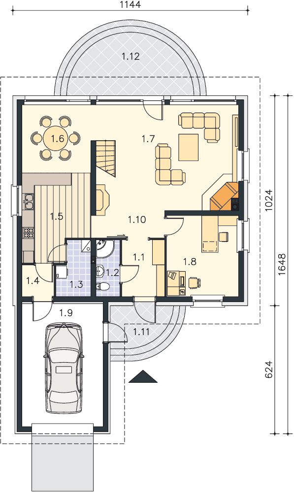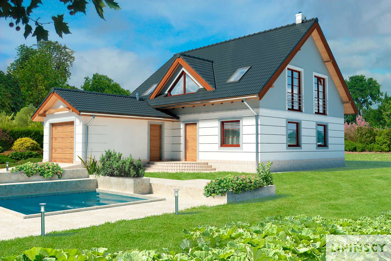 Ten projekt spełnił moje oczekiwania, prosta bryła, ciekawy rozkład wnętrz, nadaje się na wąską działkę z uwagi na wysunięcie garażu do przodu, dom energooszczędny , dwuspadowy dach. Jest to dom energooszczędny z antresolą. Nie znalazłem innego projektu , który by łączył w sobie te cechy.