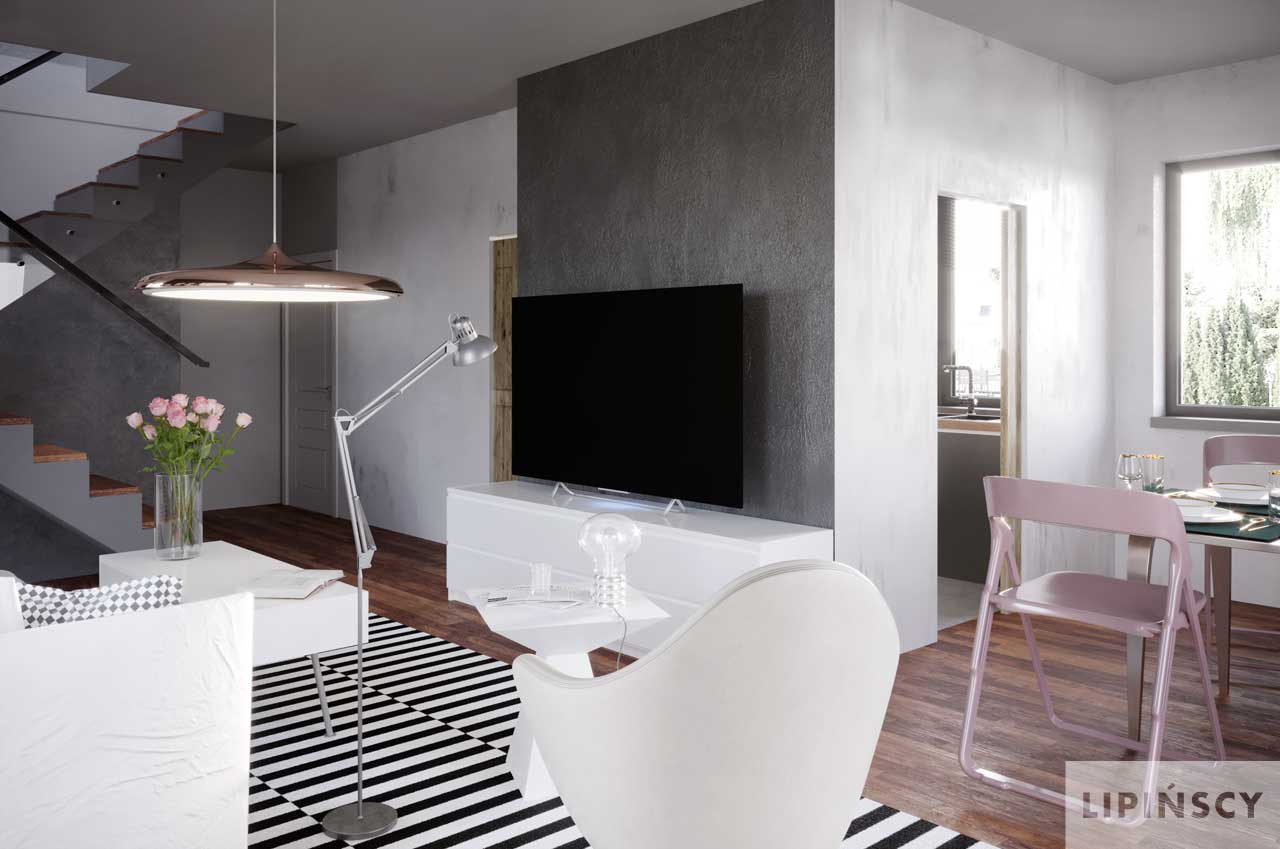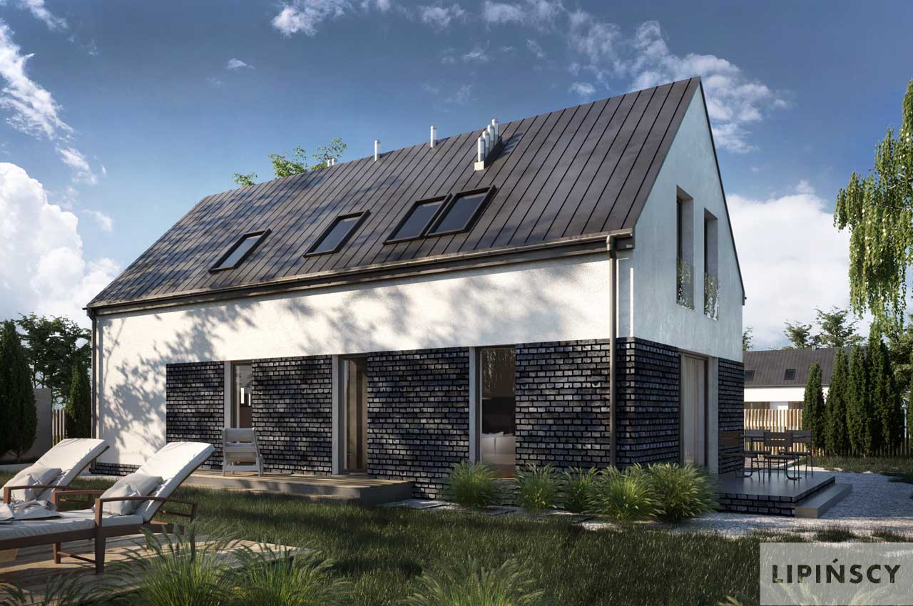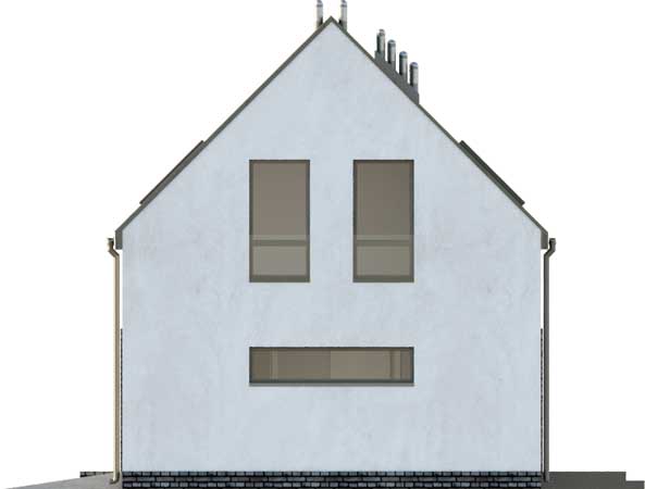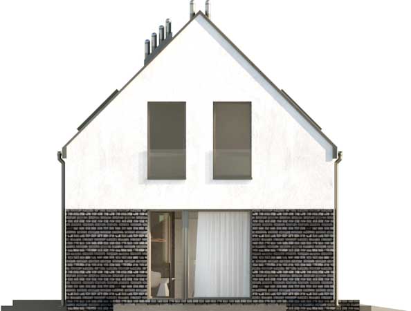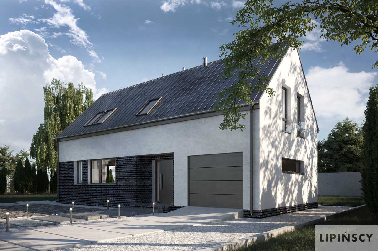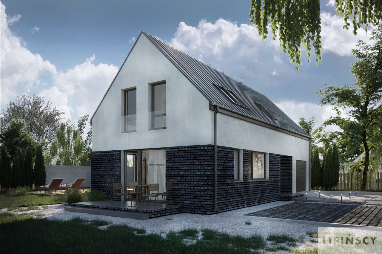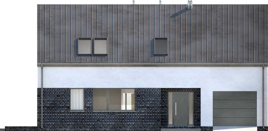 Nowoczesny dom na wąską działkę dla 4-osobowej rodziny. Parter to komfortowa część wypoczynkowa, na którą składa się salon z dwoma wyjściami na tarasy, jadalnia oraz aneks kuchenny z wyspą i przydatną spiżarnią. Nie zabrakło również miejsca dla łazienki i, dostępnej również z zewnątrz, kotłowni z funkcją pralni. Z wiatrołapu przejdziemy do jednostanowiskowego garażu. Poddasze to trzy wygodne, przestronne sypialnie i duża łazienka, zapewniające dobry odpoczynek po ciężkim dniu. Hol na poddaszu można zaaranżować na kącik wypoczynkowy. W projekcie przewidziano ogrzewanie kotłem na gaz. Możliwa jest zmiana ogrzewania na pompę ciepła.