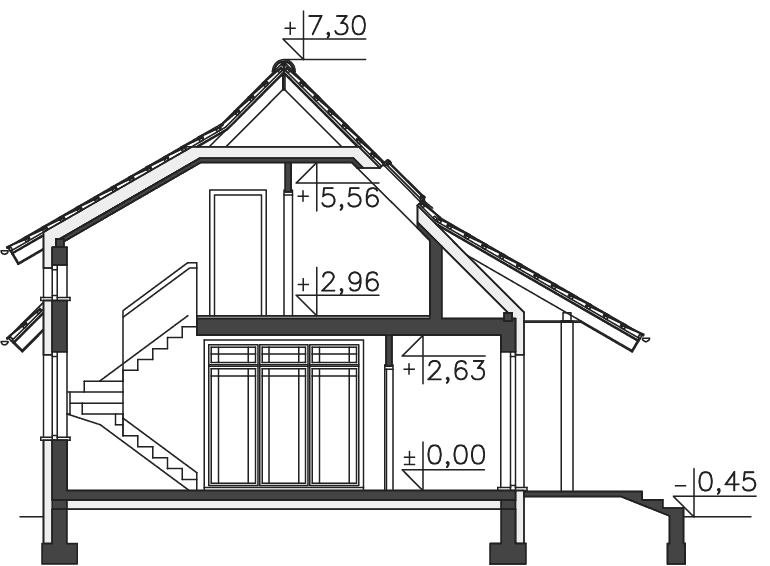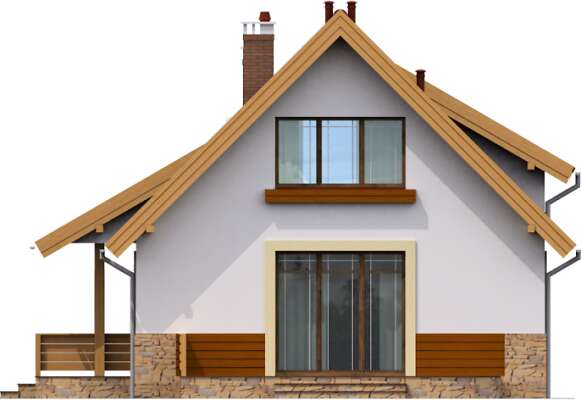 Bardzo tradycyjny, co bardzo mi odpowiada.Jest nieduży, ale właśnie takiego domu szukałam. Bardzo podoba mi się duże przeszklenie w szczycie domu.