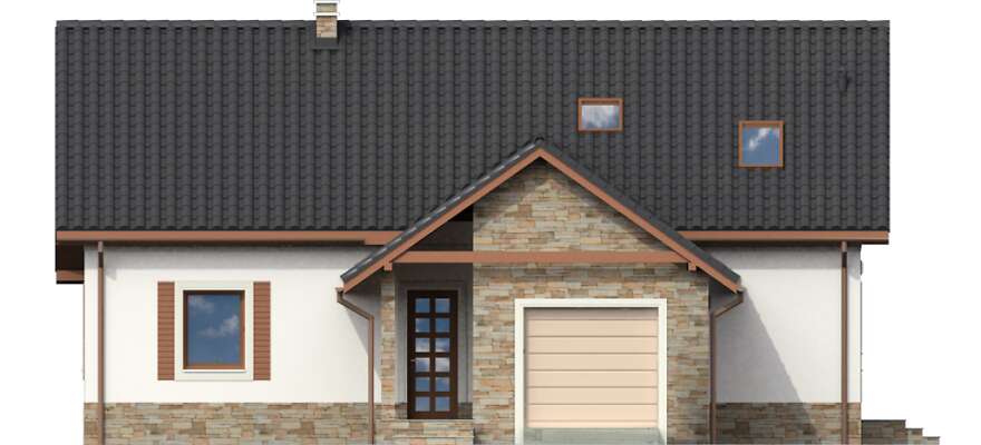 Wybrałam ten projekt, bo jest prosty i funkcjonalny. Spodobał mi się od razu. Cechuje go przestronny i praktyczny rozkład pomieszczeń oraz dobra komunikacja pomiędzy nimi. Atutem jest w pełni zadaszony duży taras. Dodatkową zaletą jest również niskie zapotrzebowanie na ciepło.