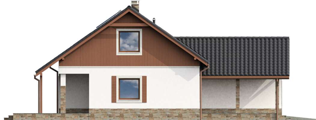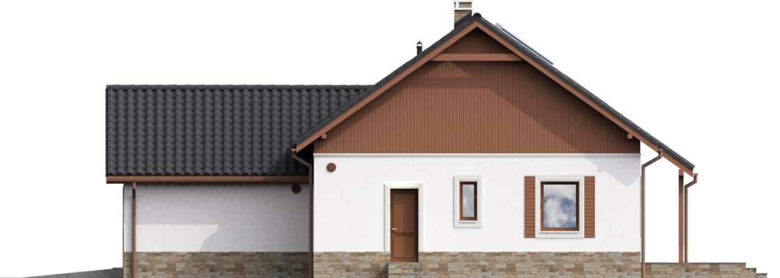 Jest to dom uszyty na miarę czteroosobowej rodziny ceniącej otwartą przestrzeń i ergonomię. Parter cechuje dobra komunikacja pomiędzy kuchnią i jadalnią, a przestronnym pokojem dziennym, który można łatwo powiększyć, otwierając szerokie przesuwne drzwi wiodące do pokoju gościnnego. Dodatkowym atutem jest w pełni zadaszony taras, dostępny wprost z jadalni. Niewątpliwą zaletą tego domu jest jego niskie zapotrzebowanie na energię grzewczą.