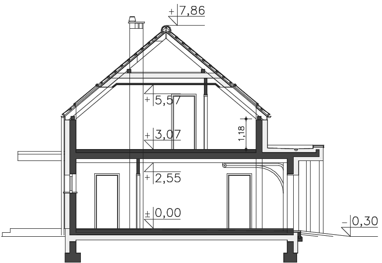 Dach - tradycyjna więźba ciesielska, pokrycie: dachówka cementowa lub ceramiczna