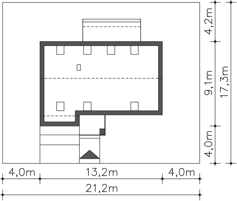 | Min. szerokość działki | 21,20m x 17,30m |