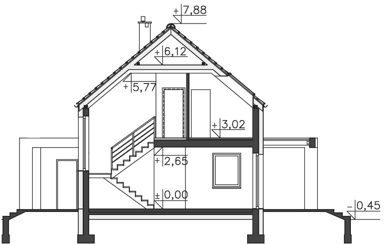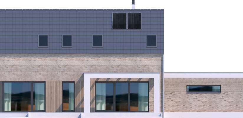 Wysokość ścianki kolankowej wynosi 142 cm. Zmiany w elewacji nie wymagają zmian w projekcie. Rolety zewnętrzne też można montować na etapie realizacji, przy czym polecamy zastosować rolety natynkowe, a nie nadokienne, ponieważ takie rozwiązanie jest korzystniejsze pod względem cieplnym.