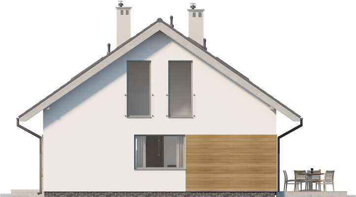 Lubisz zerkać przez okno, krzątając się po kuchni? Zobacz, jak doskonały widok masz z wygodnej kuchni zaprojektowanej w kolejnej odsłonie projektu Nikozja. Zauważ także, ile masz miejsca do przechowywania: dwa duże pomieszczenia gospodarcze oraz cztery garderoby i pralnia pomieszczą wszystkie domowe szpargały. W cieplejsze dni zrelaksujesz się na dużym tarasie, a przy niesprzyjającej pogodzie możesz ogrzać się w blasku kominka w przytulnym salonie. Doceń prostą bryłę i funkcjonalne wnętrze tego wygodnego domu! W projekcie przewidziano ogrzewanie kotłem na gaz. Możliwa jest zmiana ogrzewania na pompę ciepła.