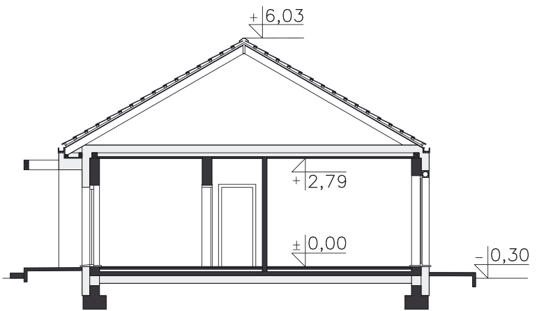 Dach - wiązary prefabrykowane, pokrycie: dachówka cementowa lub ceramiczna