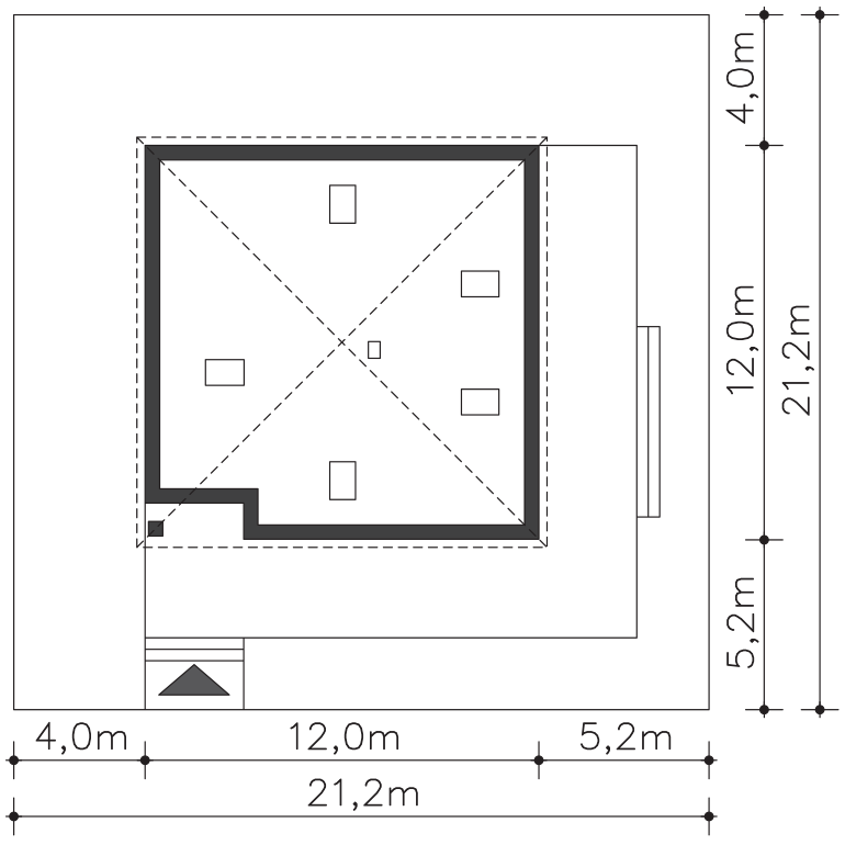 | Min. szerokość działki | 21,20m x 21,20m |