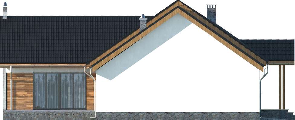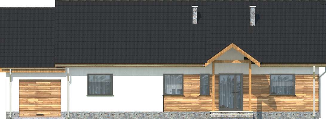 Projekt ten, dzięki logicznemu i funkcjonalnemu rozplanowaniu przestrzeni, jest doskonałą propozycją, jeśli szukamy prostego w realizacji, ale niebanalnego domu parterowego dla czteroosobowej rodziny. Duża część wspólna, do której należy przepiękny salon z wyjściem na duży taras, jadalnią oraz otwartą kuchnią, pozwala domownikom na wspólne spędzanie czasu. Część prywatna, którą obejmują trzy sypialnie oraz łazienka i pralnia pozwala zachować każdemu z mieszkańców niezbędną prywatność. Za garażem wydzielono kotłownię z możliwością zastosowania pieca na paliwo stałe, z osobnym wejściem od strony ogrodu.