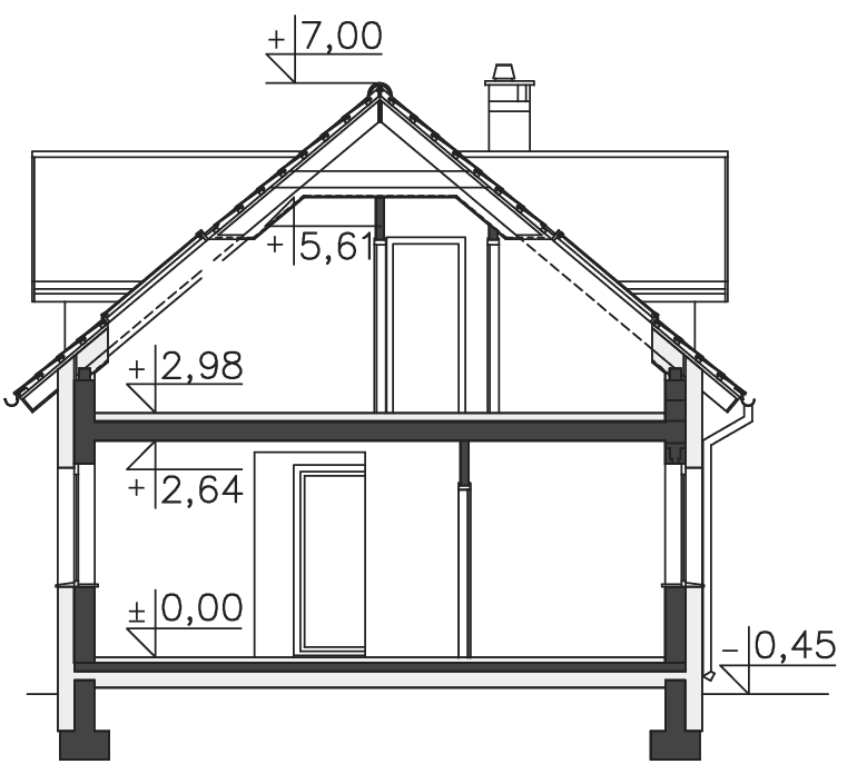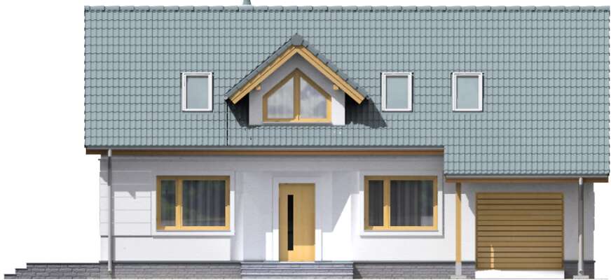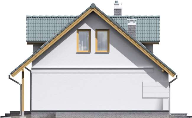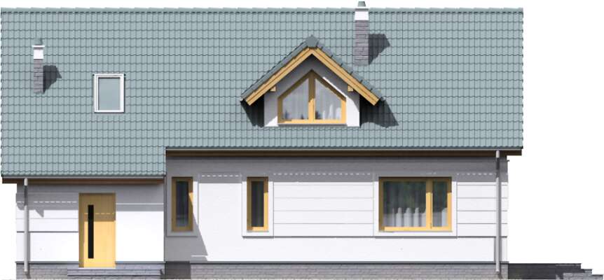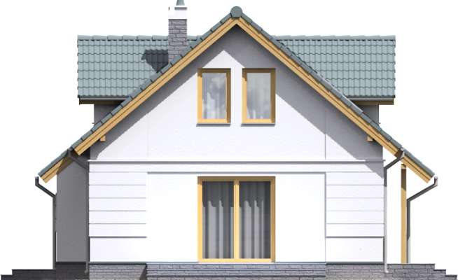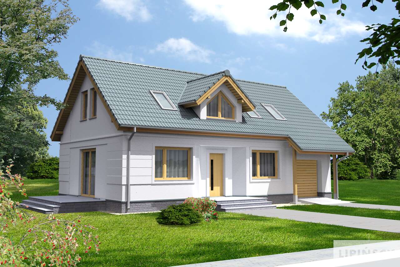 Energooszczędny dom o tradycyjnej bryle, który znakomicie nadaje się na działki z wjazdem od wschodu. Charakteryzuje go czysty podział pomieszczeń, gdzie mamy doświetlony z trzech stron salon, a także osobną, dużą kuchnię ze spiżarnią, przez którą można przejść do części gospodarczej i garażu. Na poddaszu, choć niewielkim znalazły się trzy sypialnie, w tym jedna z garderobą, osobna pralnia i łazienka. Stylistyka domu jest tradycyjna – spokojna, lekka i miła dla oka.