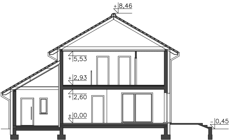 Można usytuować dom wjazdem od wschodu (lustrzane odbicie) lub zachodu, wówczas połać będzie od południa.