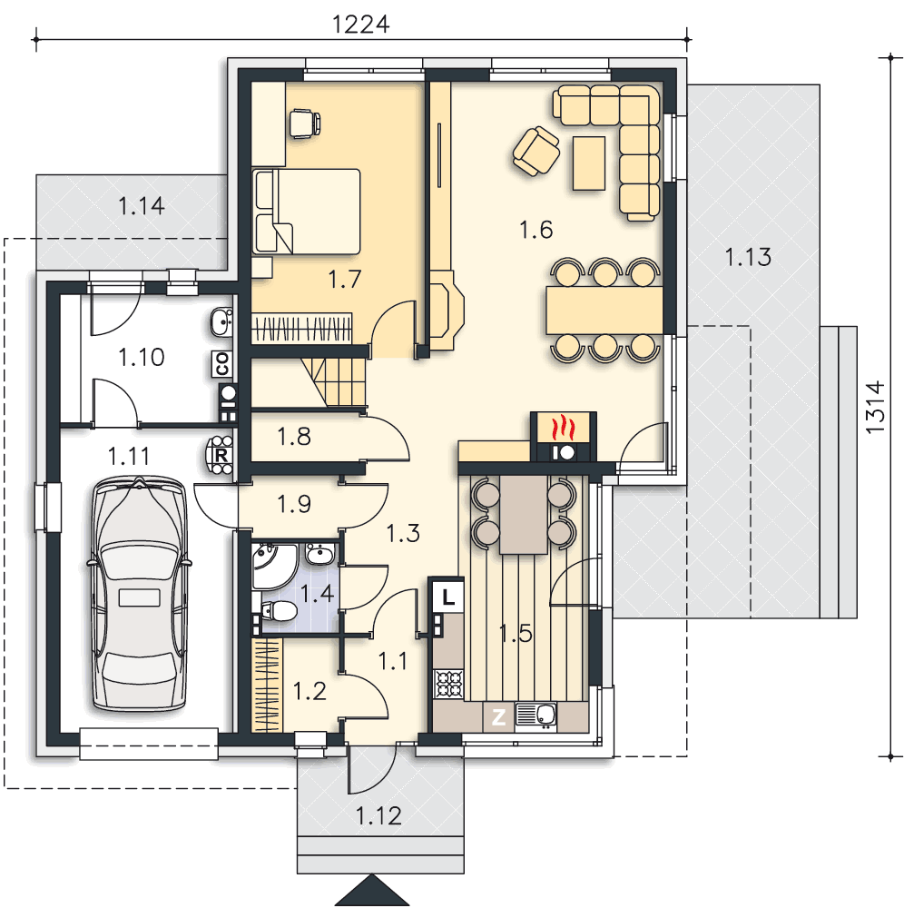 Ten dom ma wszystko czego oczekiwałbym od mojego domu marzeń! Energooszczędny, o dość prostej bryle z ciekawie rozwiązanym wnętrzem i wyjściem z kuchni bezpośrednio na taras. Przydałaby się jeszcze tylko wiata na drugi samochód. Jest taka możliwość?