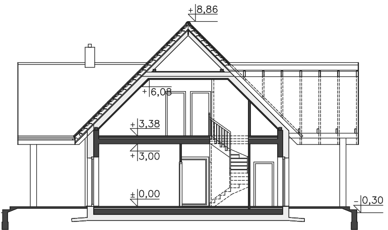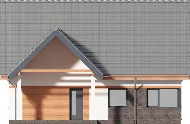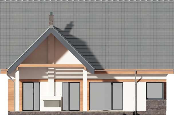 Dom z użytkowym poddaszem, zaplanowany w standardzie pasywnym, o prostym, dwuspadowym dachu, na planie prostokąta, co gwarantuje maksymalne i funkcjonalne wykorzystanie przestrzeni mieszkalnej. Sercem domu jest duży salon z otwartą na niego, wygodną kuchnią, obok której zlokalizowano jadalnię. Na parterze znajduje się również sypialnia rodziców, z własną łazienką oraz toaleta i pomieszczenie techniczne. Poddasze przeznaczono na dwa ustawne pokoje, dużą łazienkę z prysznicem i narożną wanną oraz dwie, bardzo przydatne w każdym domu garderoby. Pasywny standard domu gwarantuje komfort jego użytkowania oraz niskie rachunki.