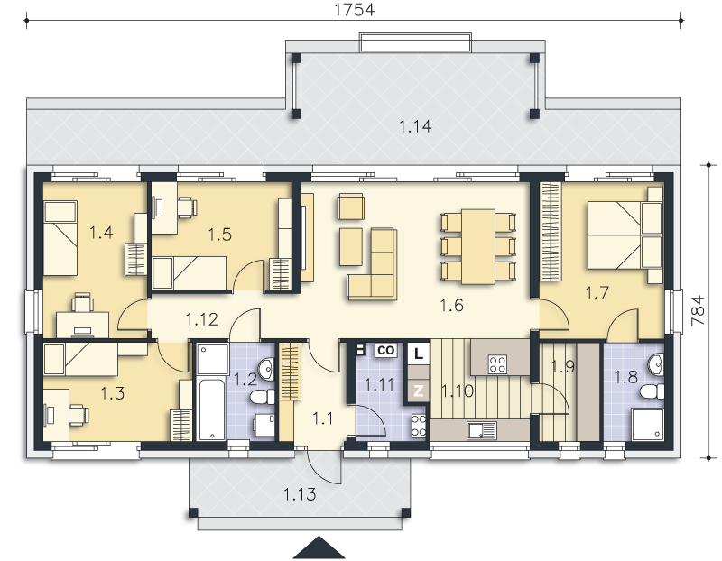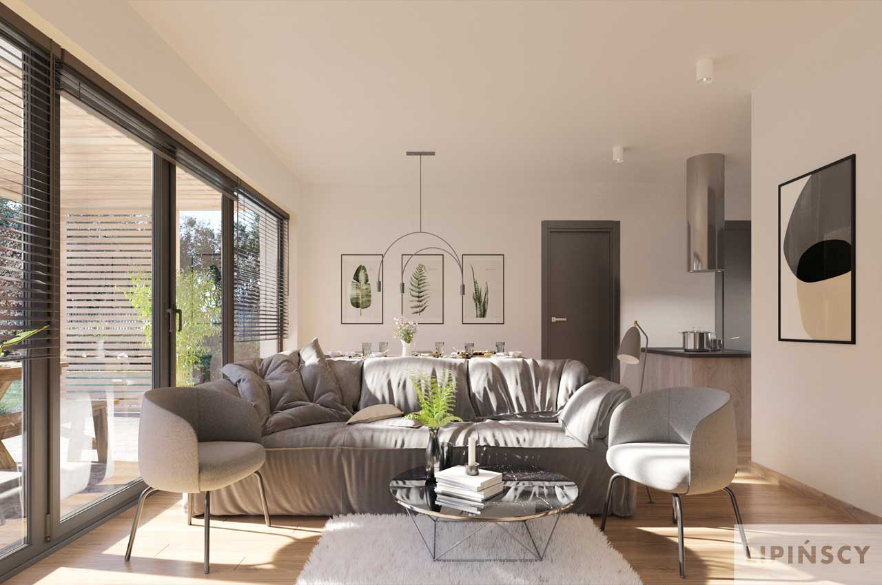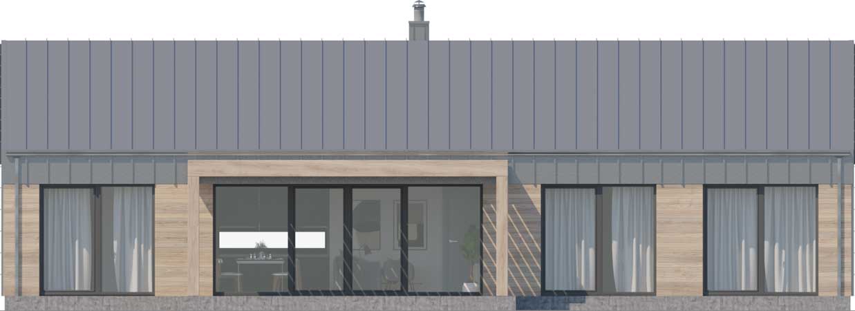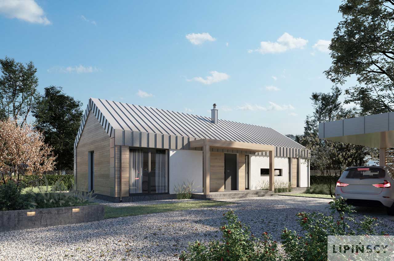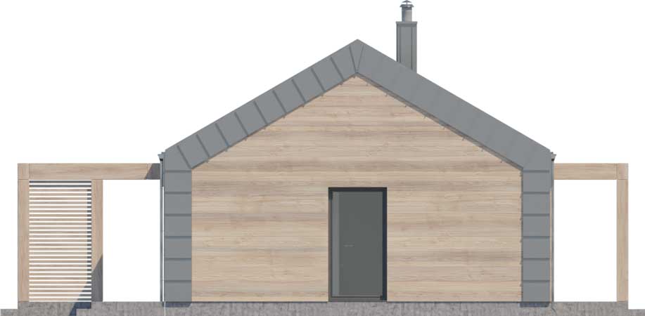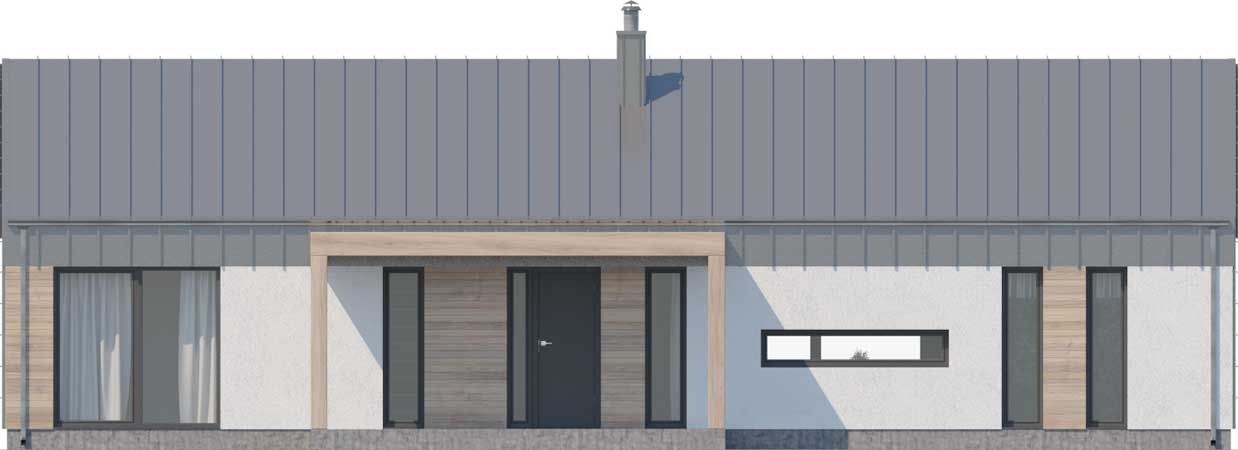 Nieduży dom o bardzo wygodnej funkcji, często zarezerwowanej dla domów o znacznie większej powierzchni, o prostej, ale atrakcyjnie prezentującej się bryle. Jego część dzienną stanowi piękny, dobrze doświetlony salon z jadalnią oraz kuchnia z wejściem do spiżarni. W części nocnej znajdują się trzy wygodne sypialnie oraz łazienka. To jednak nie wszystko. Dla wygody mieszkańców obok salonu zaprojektowana została czwarta, duża sypialnia z łazienką – idealna jako pokój rodziców lub w razie potrzeby pokój gościnny. Do domu przynależy również kotłownia, dostępna z przestronnego wiatrołapu. Elegancki, energooszczędny i niedrogi w budowie - taki właśnie jest Portimao. W projekcie przewidziano ogrzewanie kotłem na gaz. Możliwa jest zmiana ogrzewania na pompę ciepła.