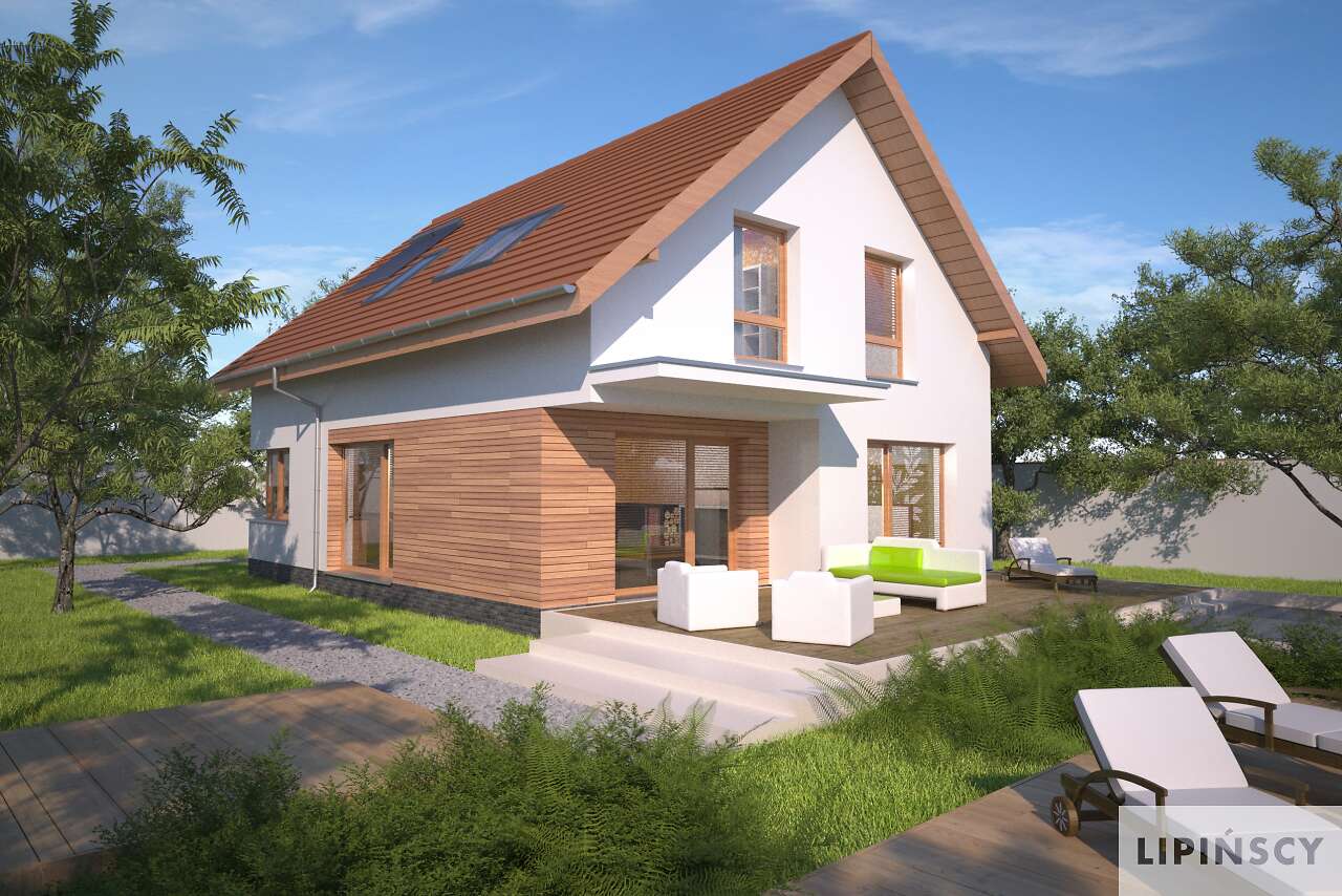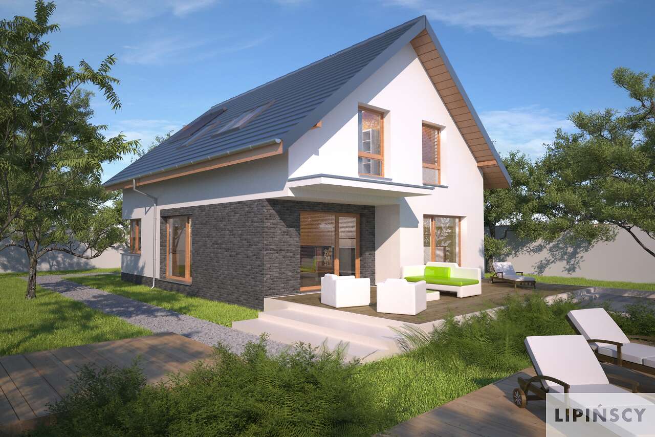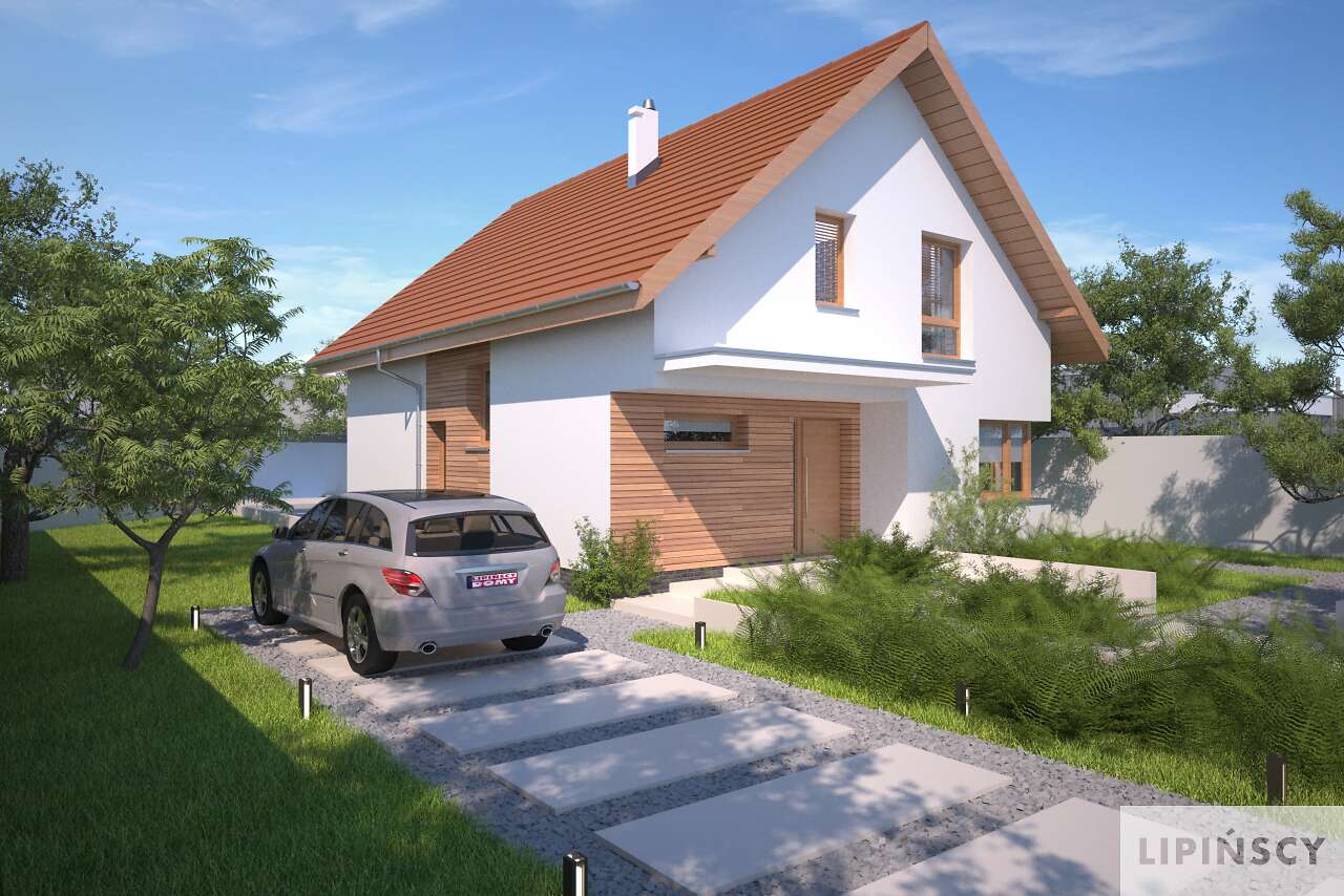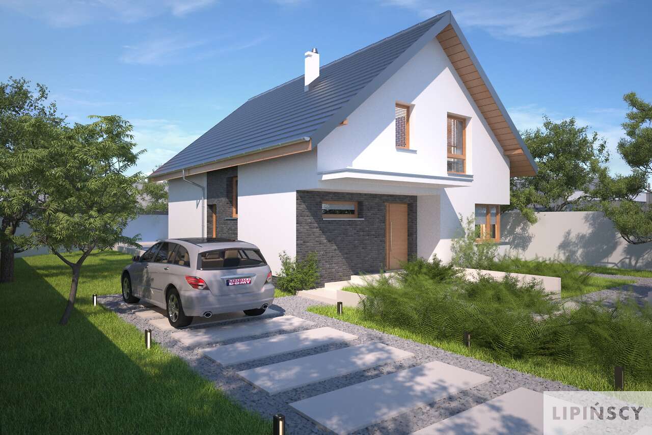 Energooszczędny dom z użytkowym poddaszem, którego cechą charakterystyczną jest wejście od szczytu, co pozwala na jego lokalizację nawet na niezbyt szerokiej działce. Dzięki prostej bryle i dwuspadowemu dachowi, jest niedrogi w budowie. Energooszczędna technologia pozawala na komfortową i niedrogą eksploatację. Na parterze znajdują się takie pomieszczenia jak otwarta na salon kuchnia, duży pokój dzienny z miejscem na wygodny, rodzinny stół, wygodna sypialnia, łazienka i kotłownia. Na poddaszu przewidziano trzy sypialnie, dużą łazienkę oraz podręczną garderobę.