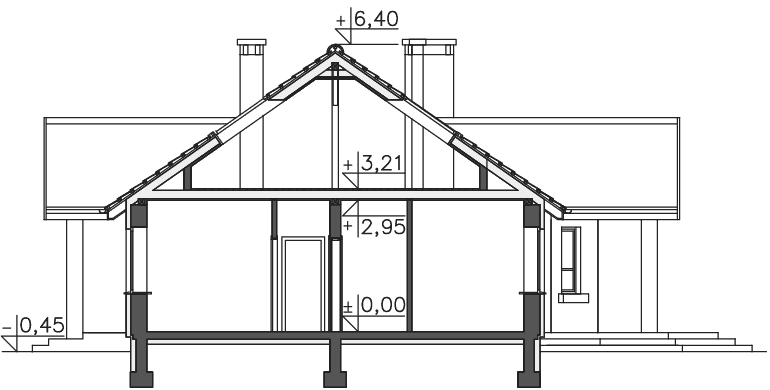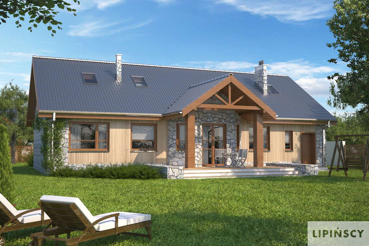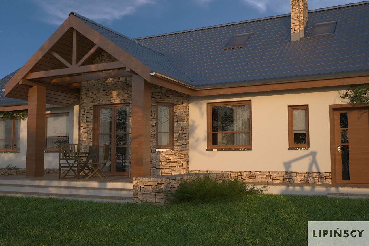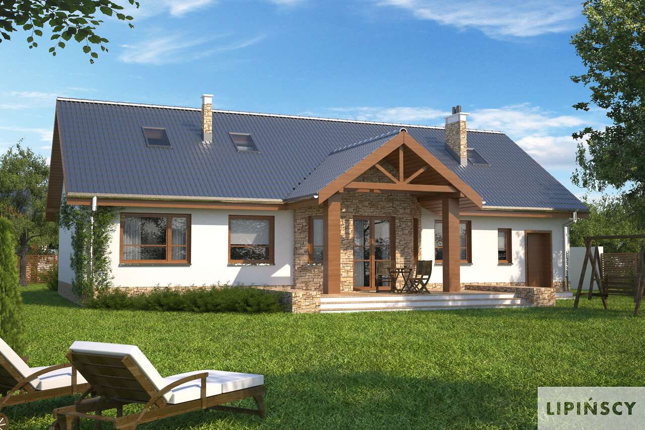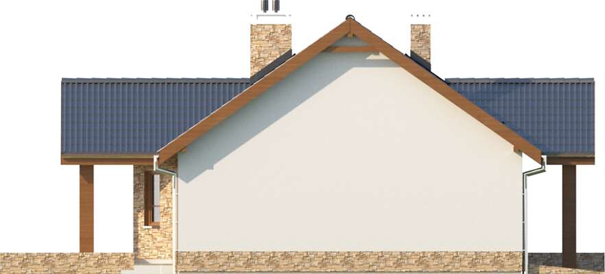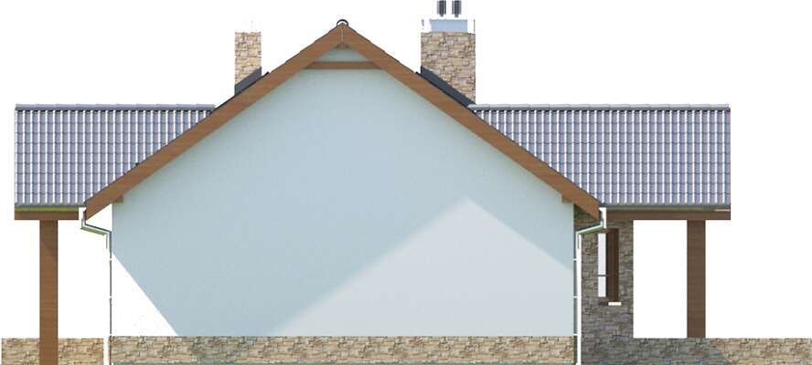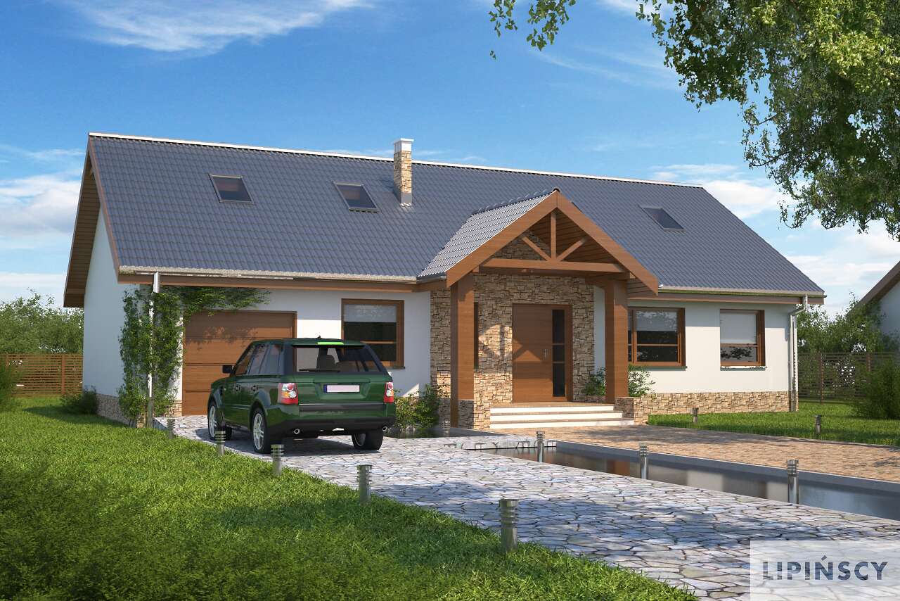 Nasz znany i lubiany projekt Praga zyskał w tej wersji osobną kotłownię usytuowaną za garażem, dzięki czemu strefa gospodarcza może być wydzielona z części mieszkalnej. Kotłownia jest na tyle duża, że można w niej zastosować piec na paliwo stałe. Jednocześnie kominek w salonie został umieszczony na ścianie łączącej z kotłownią, dzięki czemu kominy pieca i kominka można połączyć w jeden trzon. Dom jest przekryty dachem dwuspadowym, który jest łatwiejszy i tańszy w realizacji.