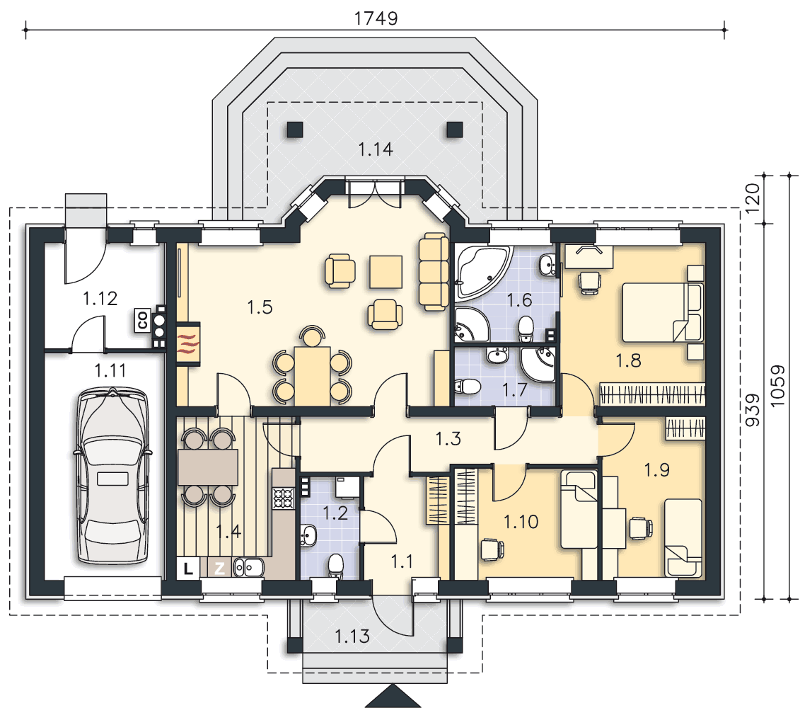 1. Można wyprostować wykusz, a tym samym zrobić prosty dach z tyłu budunku?