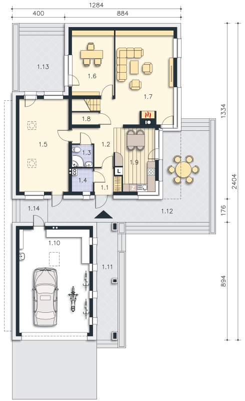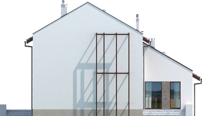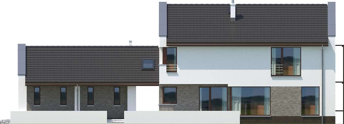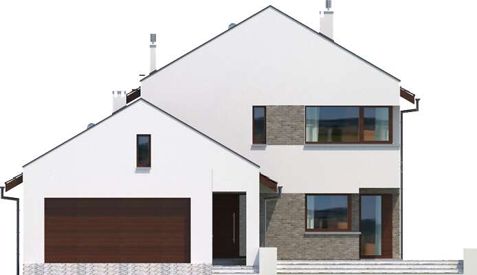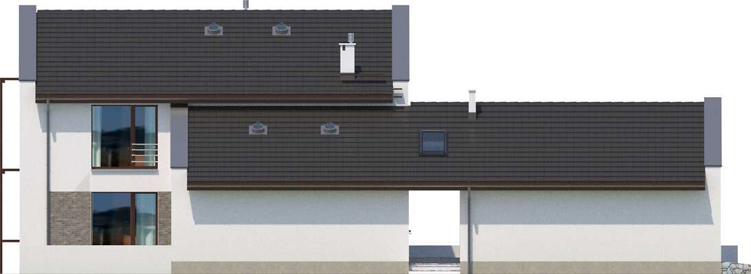 Quimper to dom energooszczędny o nowoczesnej bryle i ciekawie rozwiązanym układzie funkcjonalnym. Do domu przylega garaż, połączony z domem bryłą dachu, natomiast fizycznie jest od oddzielony od niego szerokim pasażem. Z pasażu można wejść do domu, a także bezpośrednio do osobnego pokoju, pełniącego funkcję pracowni. Część dzienna to duży salon z oknem narożnym, wychodzącym na duży taras. Przenikające się bryły, przejścia, podcienia i tarasy urozmaicają dom i sprawiają, że dom nadaje się na wąskie działki z wjazdem od zachodu, zapewniając odpowiednie naświetlenie i zachowując przy tym prywatność mieszkańców.